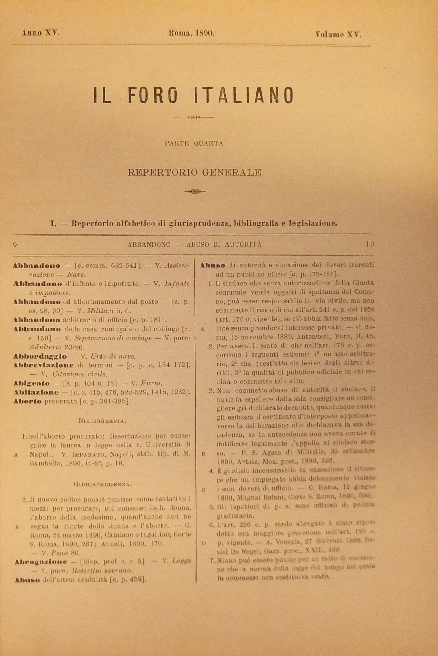 Repertorio Generale Annuale del Foro Italiano. Vol. XV – Anno 1890
