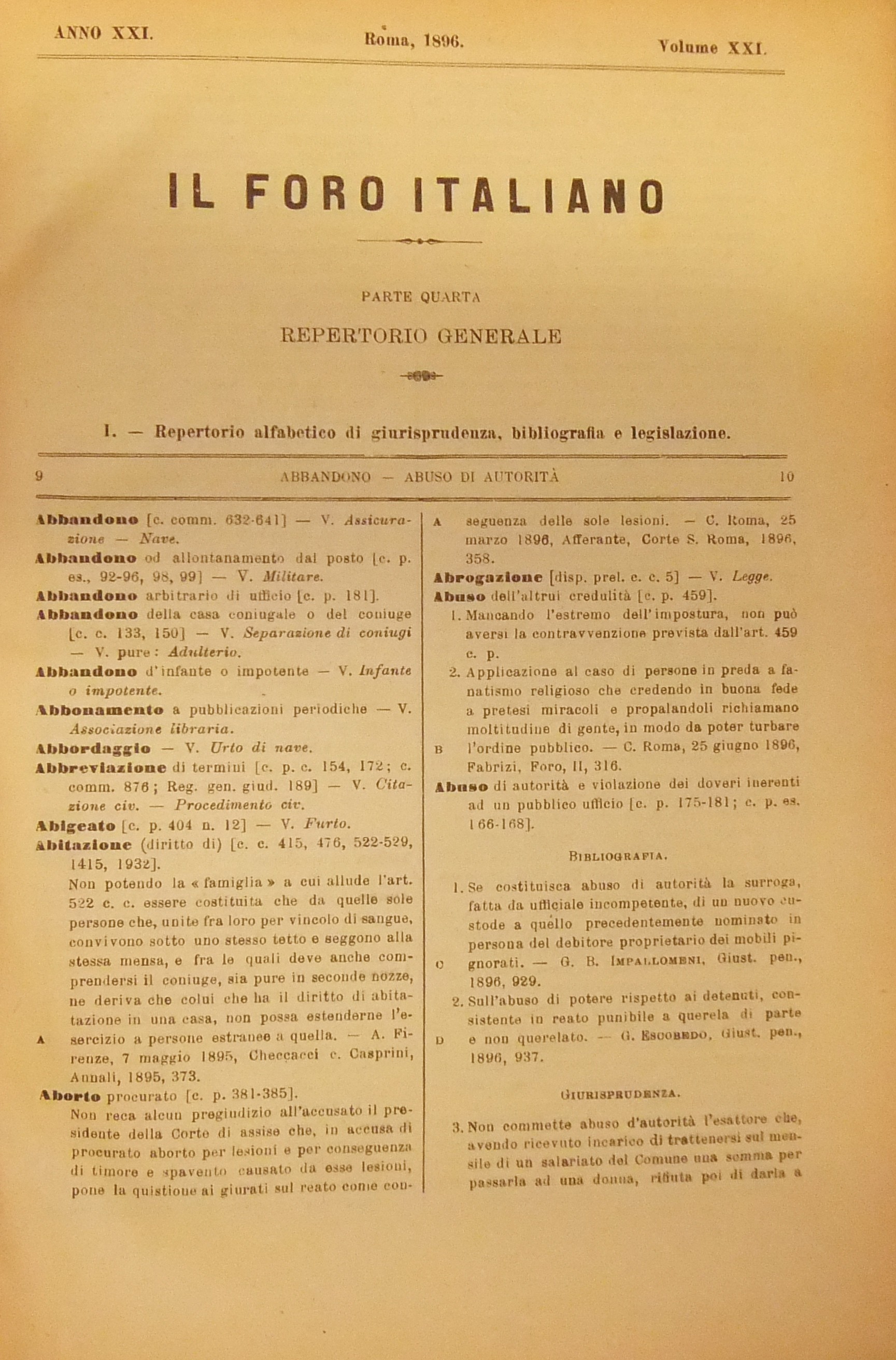 Repertorio Generale Annuale del Foro Italiano. Vol. XXI - Anno 1896