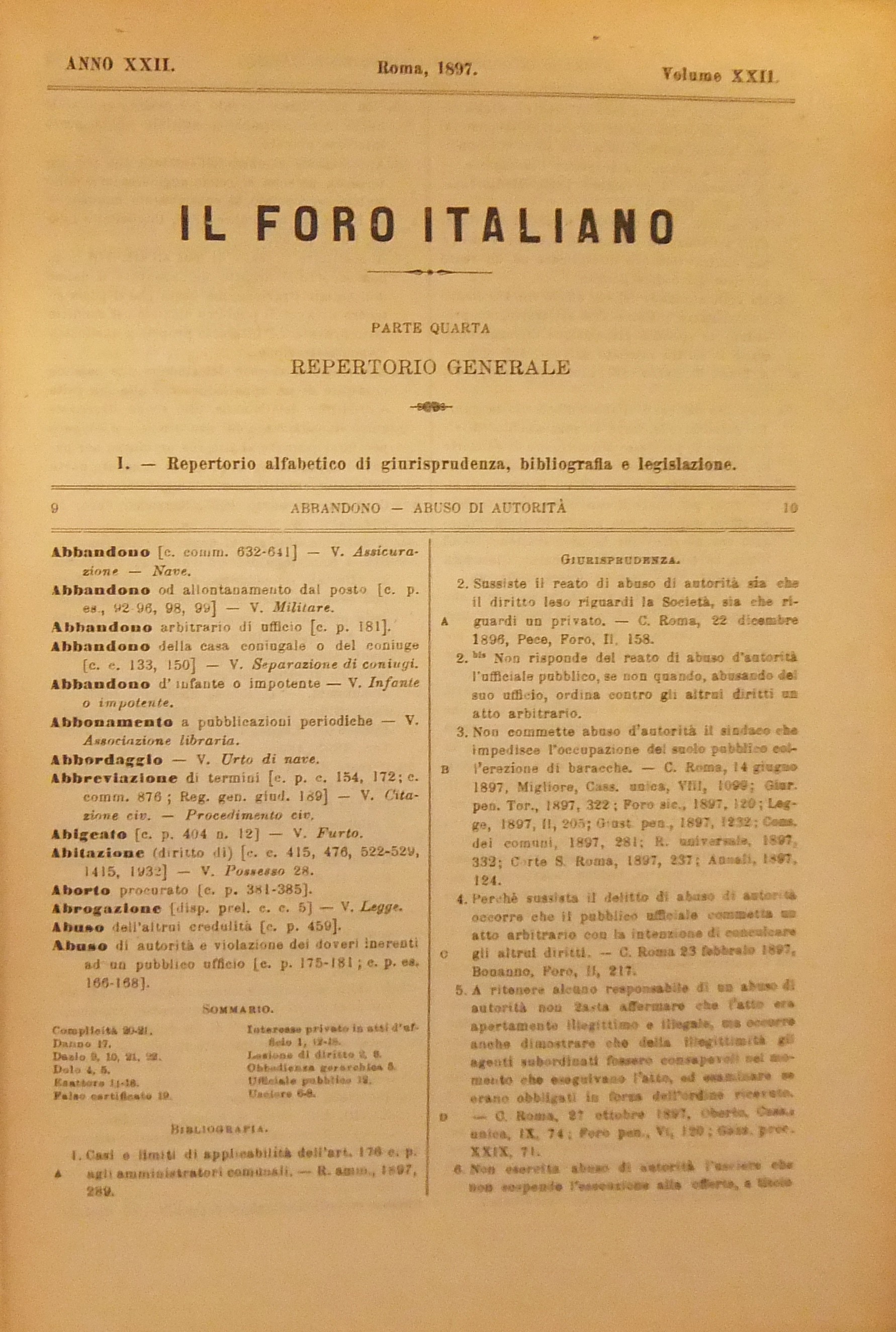 Repertorio Generale Annuale del Foro Italiano. Vol. XXII - Anno 1897