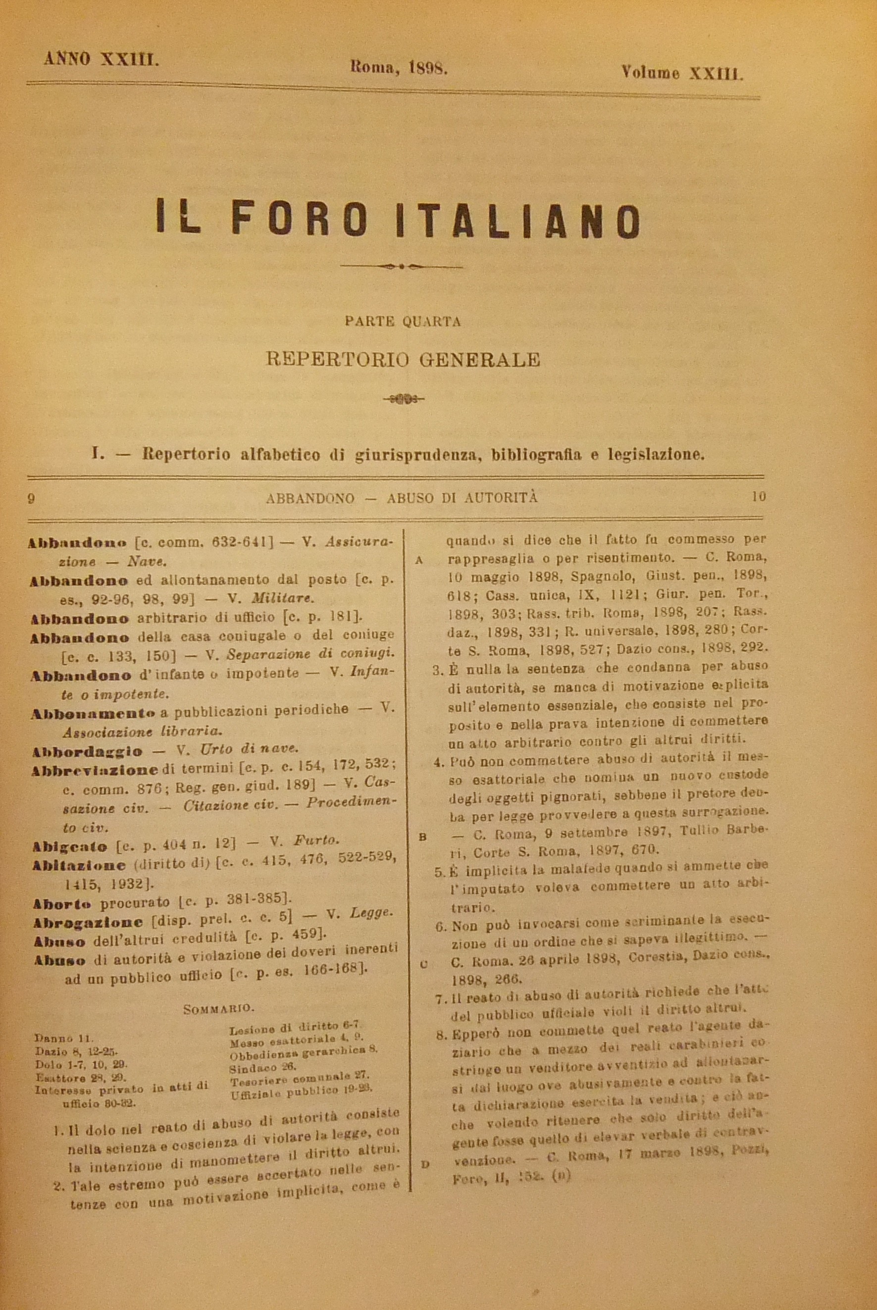 Repertorio Generale Annuale del Foro Italiano. Vol. XXIII - Anno 1898