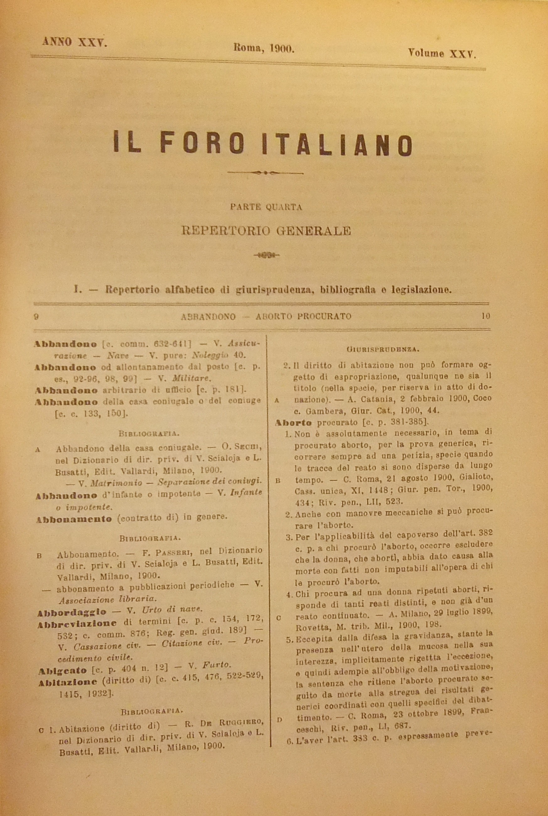 Repertorio Generale Annuale del Foro Italiano. Vol. XXV - Anno 1900
