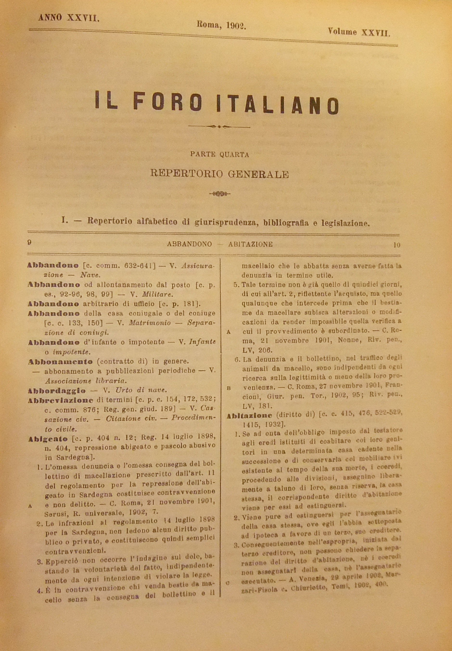 Repertorio Generale Annuale del Foro Italiano. Vol. XXVII - Anno 1902