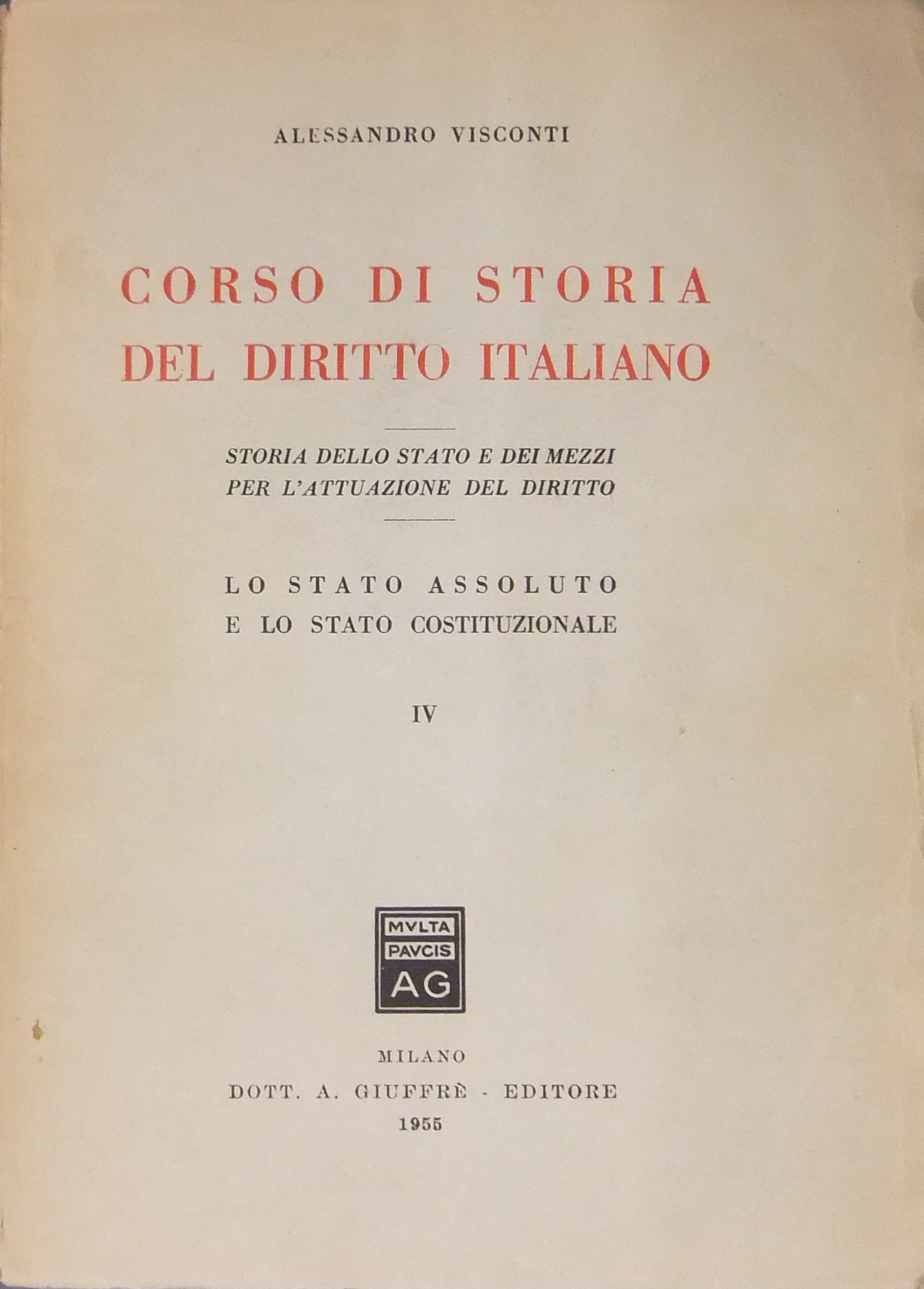 Corso di storia del diritto italiano. Storia dello Stato e dei mezzi per l'attuazione del diritto. Vol. I - Da Carlo Magno a Corrado II (800-1037); Vol. III; Vol. IV - Lo Stato assoluto e lo Stato costituzionale