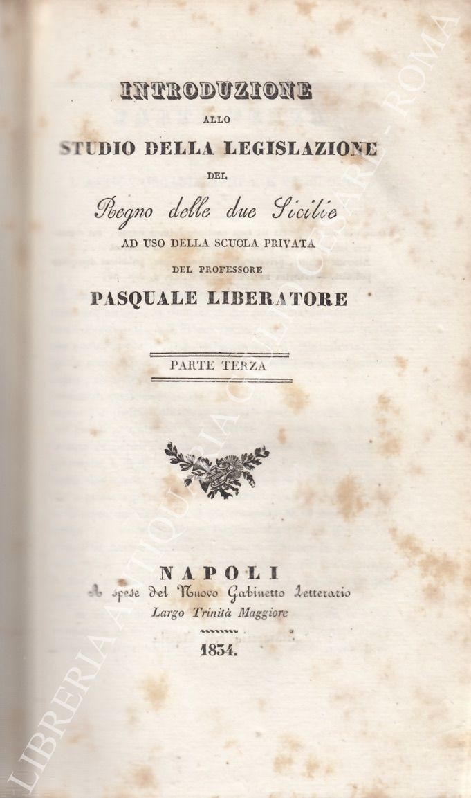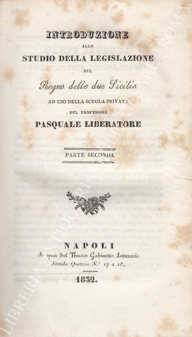Introduzione allo studio della legislazione del Regno delle Due Sicilie ad uso della scuola privata. UNITO A: Della feudalità , suoi diritti ed abusi nel Regno delle Due Sicilie. Della sua abolizione e delle conseguenze da essa prodotte nella nostra legislazione