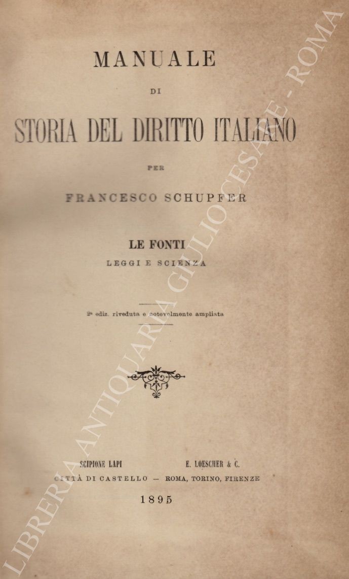 Manuale di storia del diritto italiano. Le fonti leggi e scienza