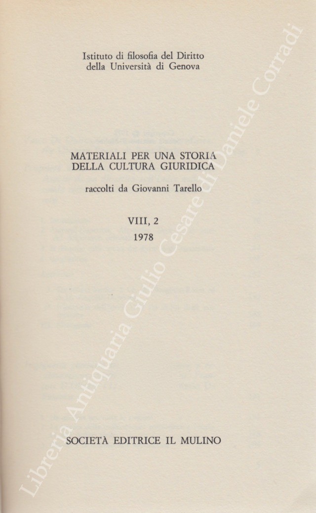 Materiali per una storia della cultura giuridica raccolti da Giovanni Tarello. Vol. VIII,2 - 1978