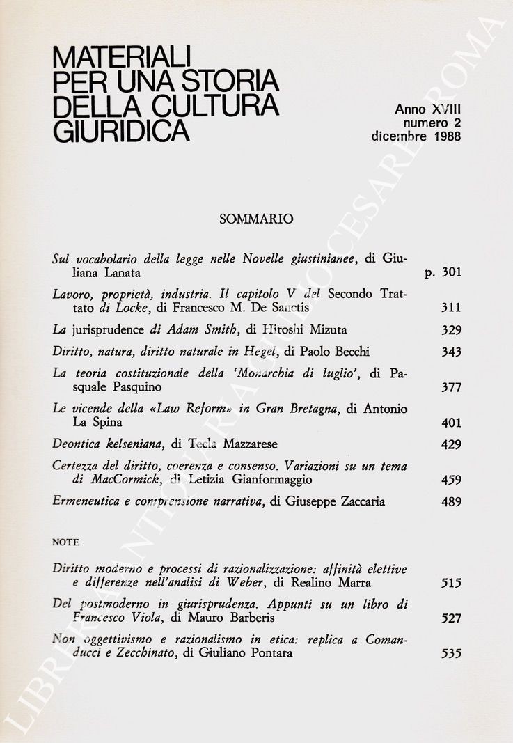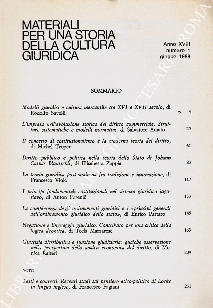 Scritti di: Amato S., Barberis, Becchi, De Sanctis M., Fagiani, Ferrarese, Gianformaggio, Lanata, La Spina, Marra, Mazzarese, Mizuta, Pasquino, Pattaro, Perenic, Pontara, Raiteri, Savelli, Troper, Viola, Zaccaria, Zappia, Zolo.