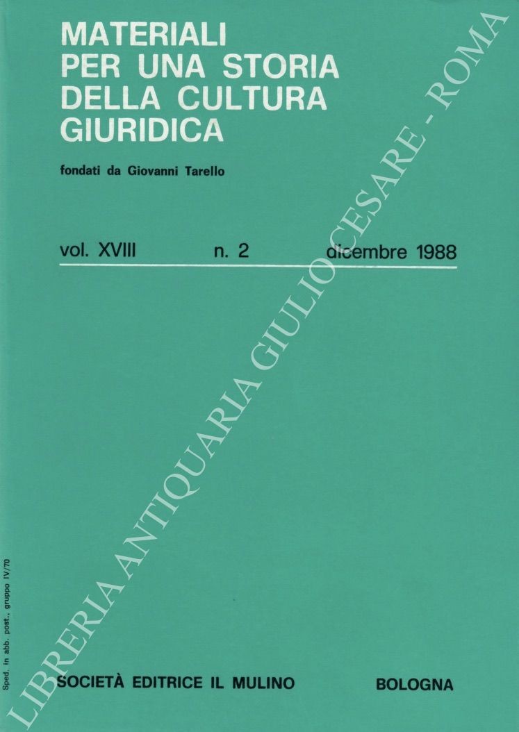 Materiali per una storia della cultura giuridica raccolti da Giovanni Tarello. Vol. XVIII,1 e XVIII,2 - 1988