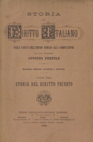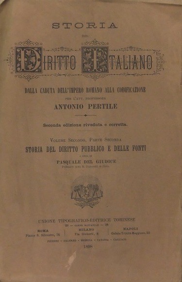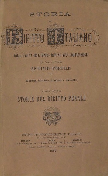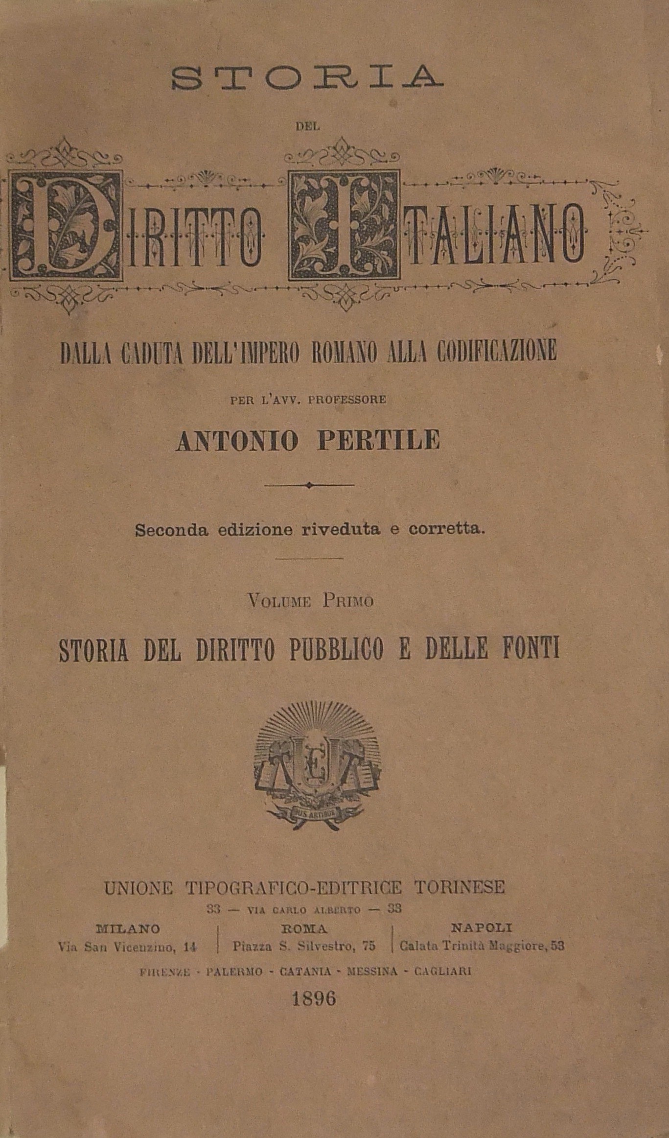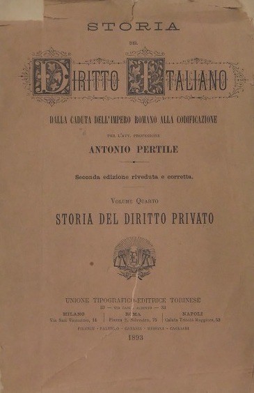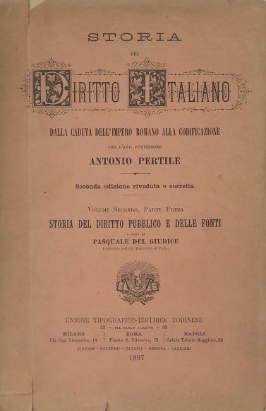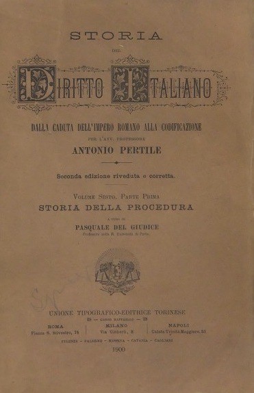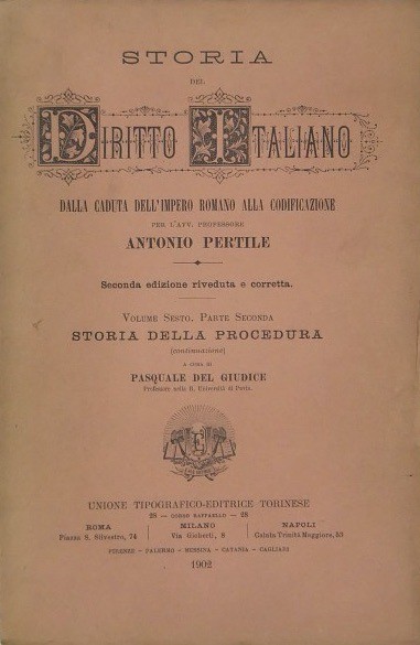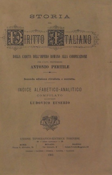 Storia del diritto italiano dalla caduta dell'Impero romano alla codificazione. Voll. I e II - Storia del diritto pubblico e delle fonti. Voll. III e IV - Storia del diritto privato. Vol. V - Storia del diritto penale. Vol. VI - Storia della procedura. Indice alfabetico-analitico compilato dall'avvocato Ludovico Eusebio