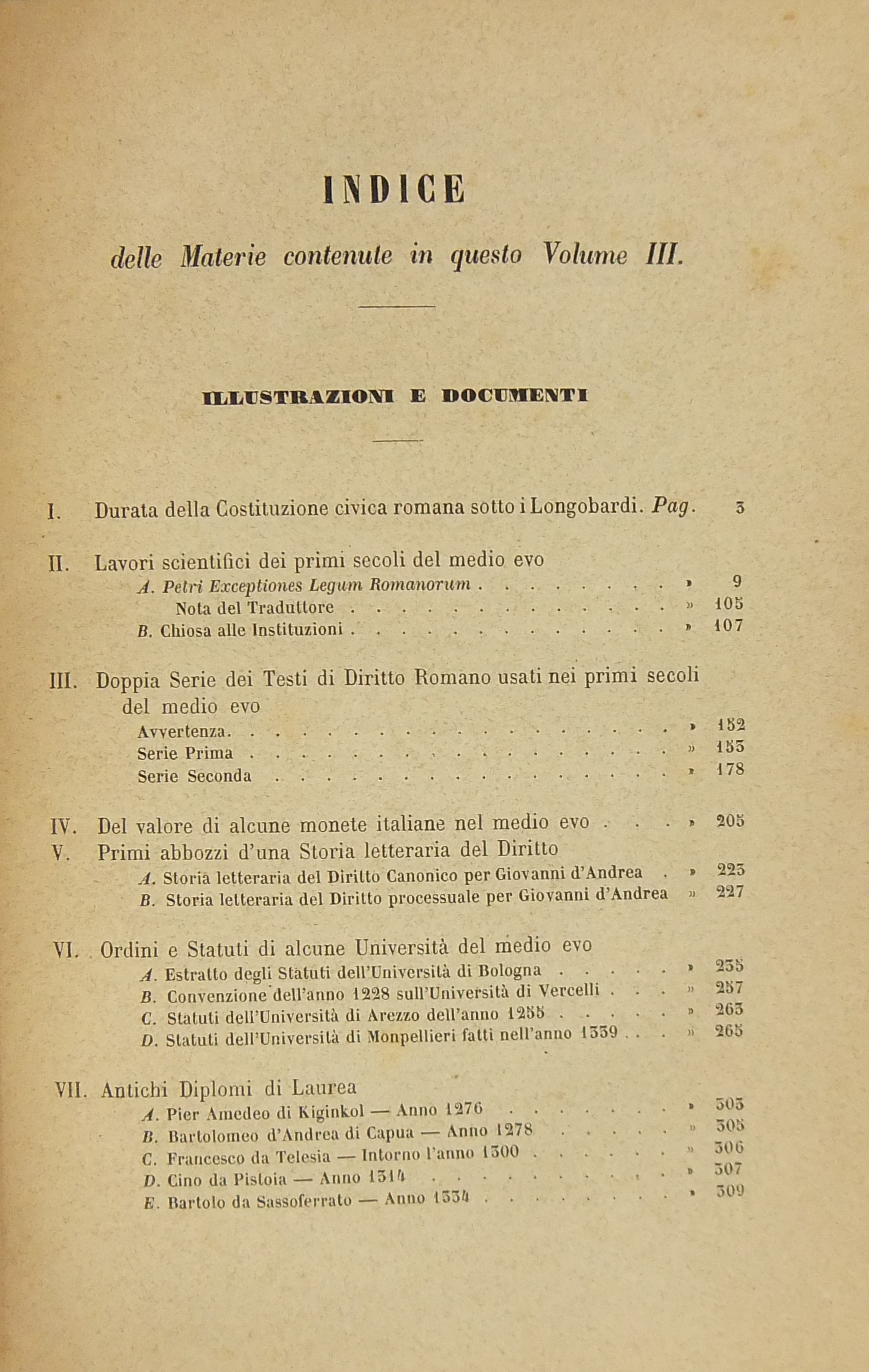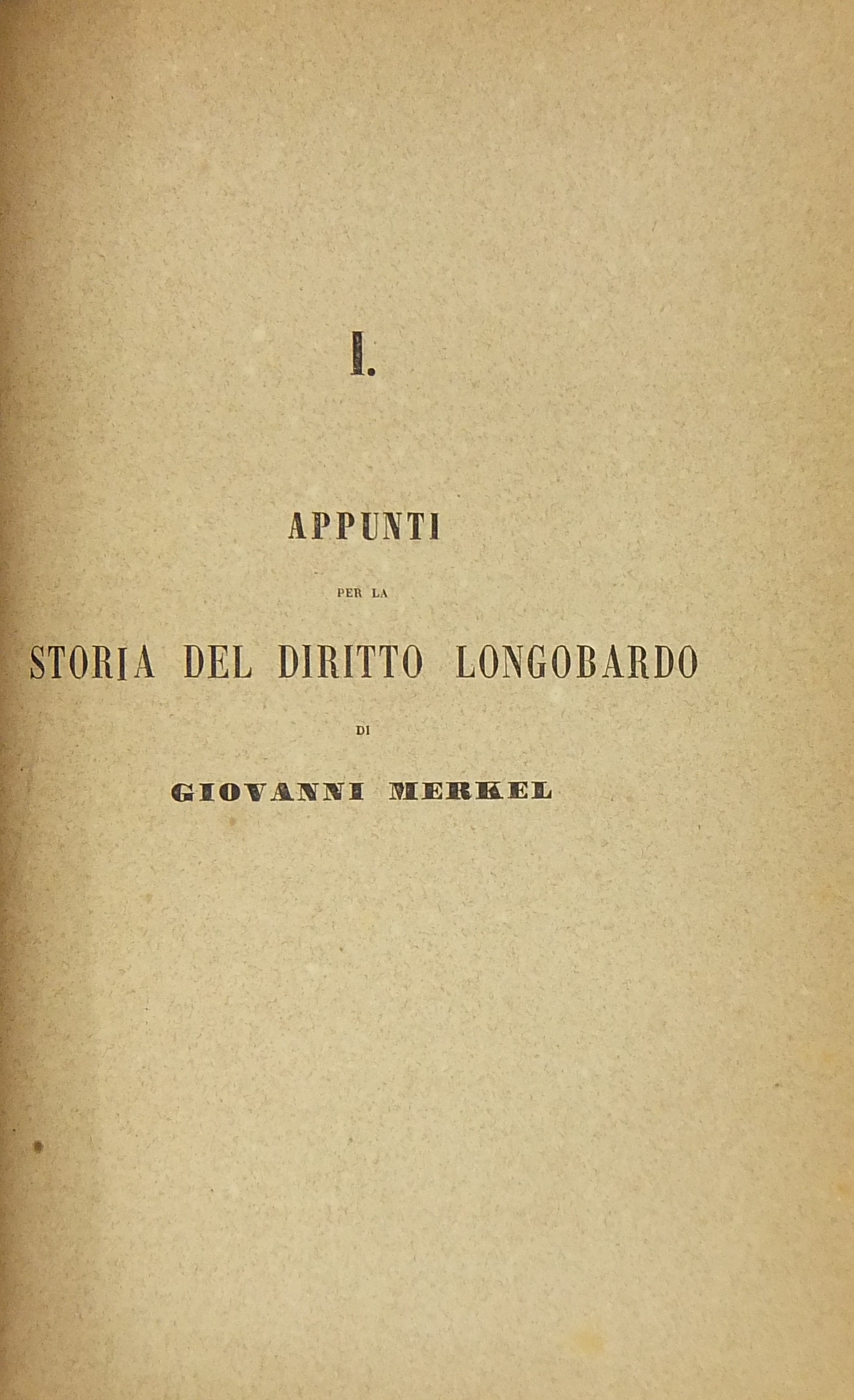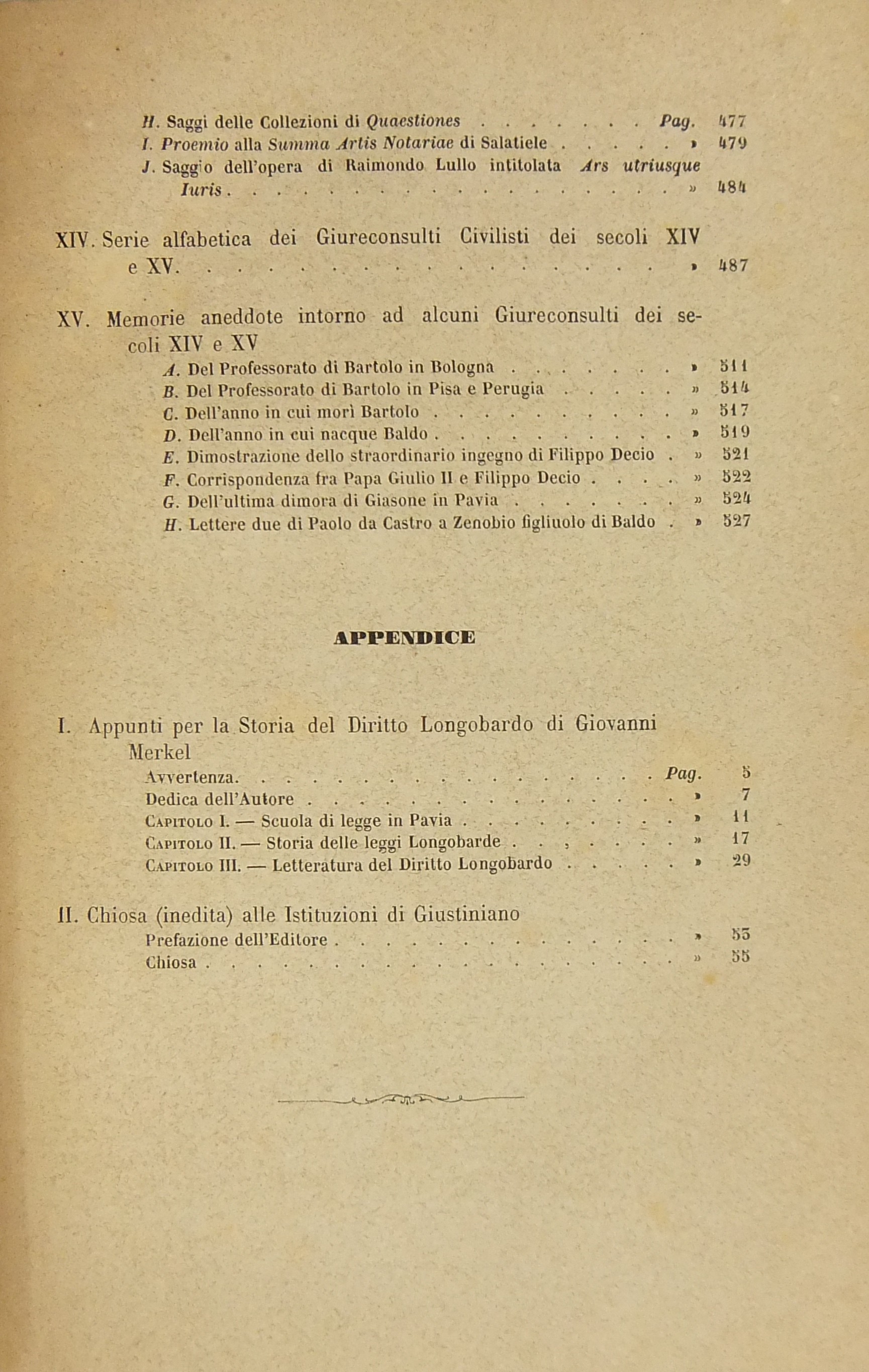 Nelle 74 pagg. di Appendice troviamo gli Appunti per la Storia del Diritto Longobardo di Giovanni Merkel e la Chiosa (inedita) alle Istituzioni di Giustiniano.