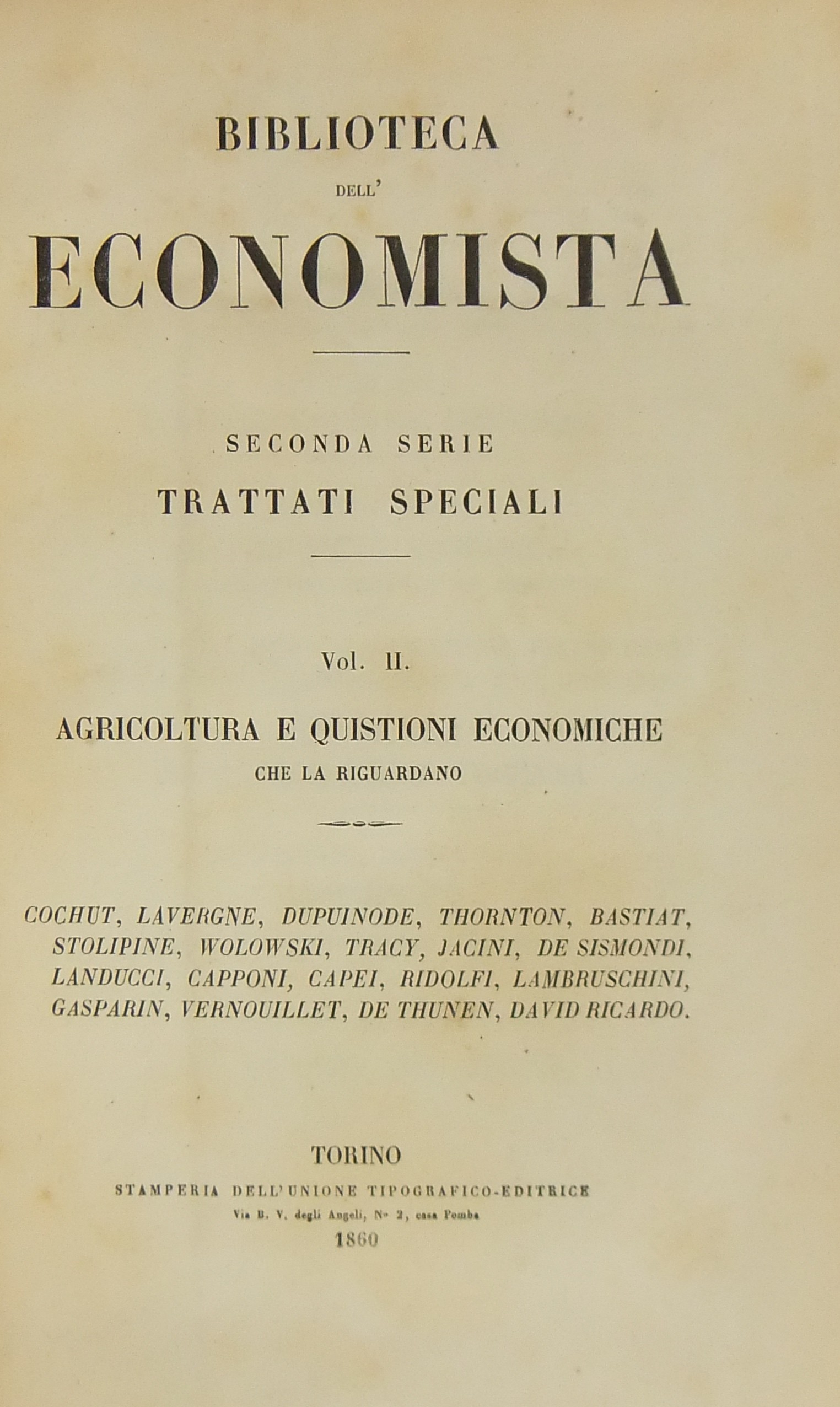 Cochut - Lavergne - Dupuinode - Thornthon - Bastiat - Stolipine - Woloski - Tracy - Jacini - De Sismondi - Landucci - Capponi - Capei - Ridolfi - Lambruschini - Gasparin - Vernouillet - De Thunen - Ricardo