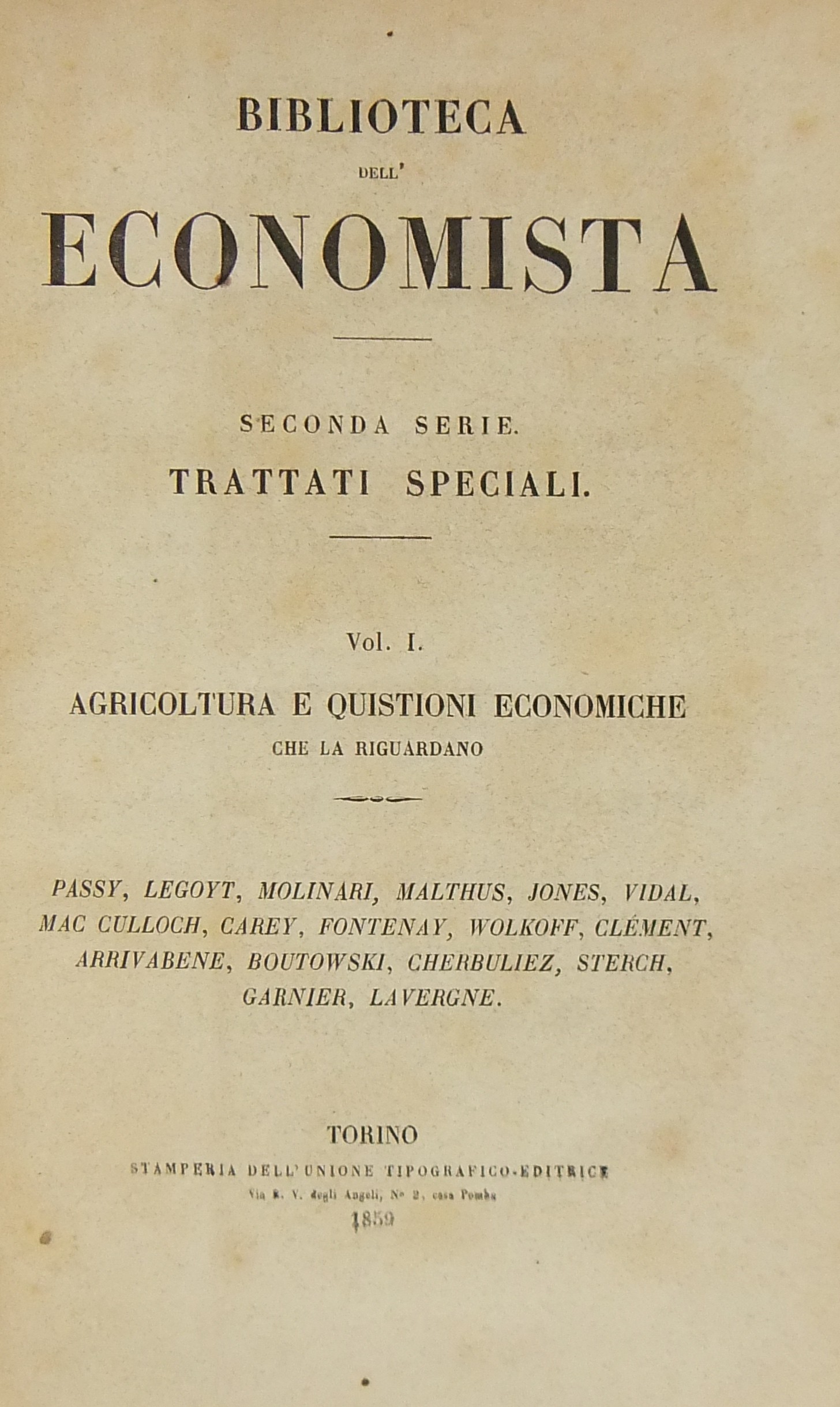 Passy - Legoyt - Molinari - Malthus - Jonec - Vidal - Mc Culloch - Carey - Fontenay - Leonce de Lavergne e altri