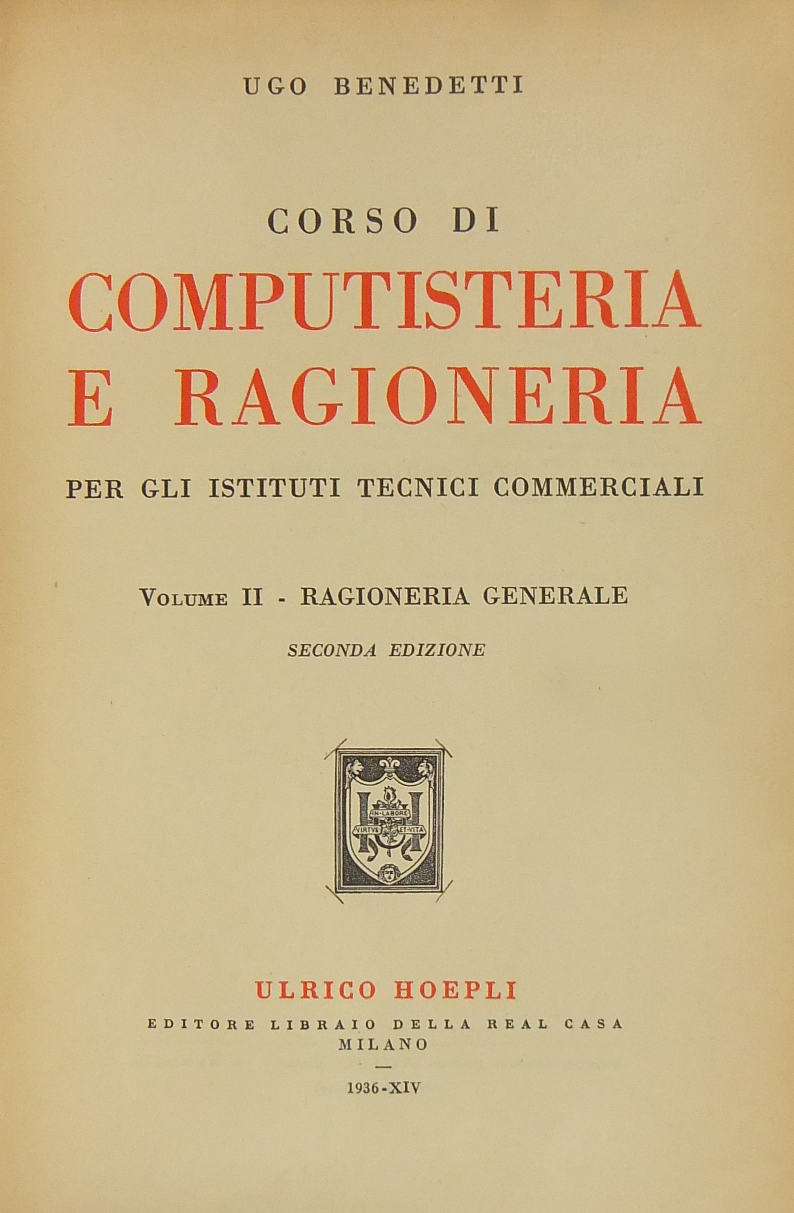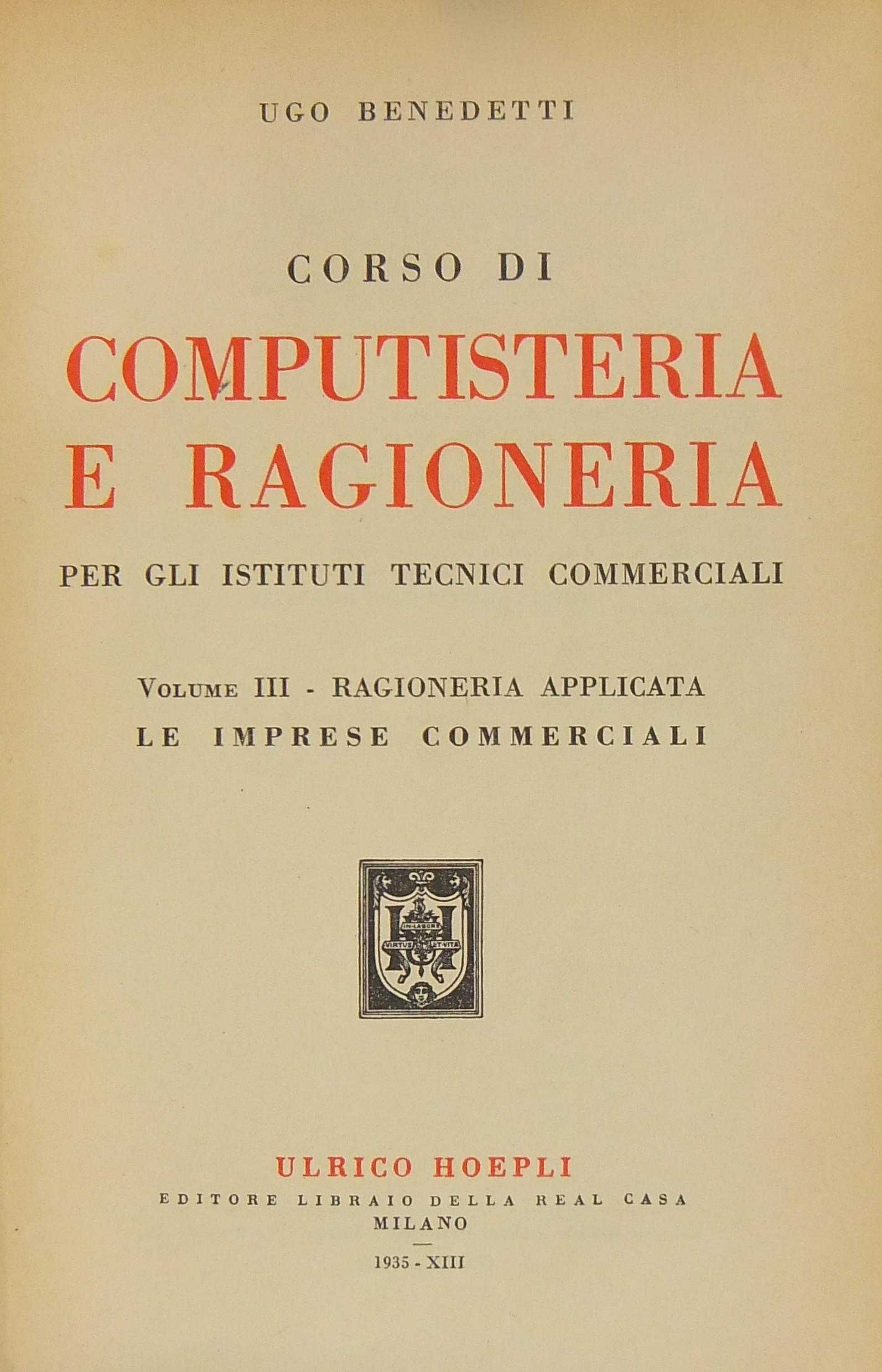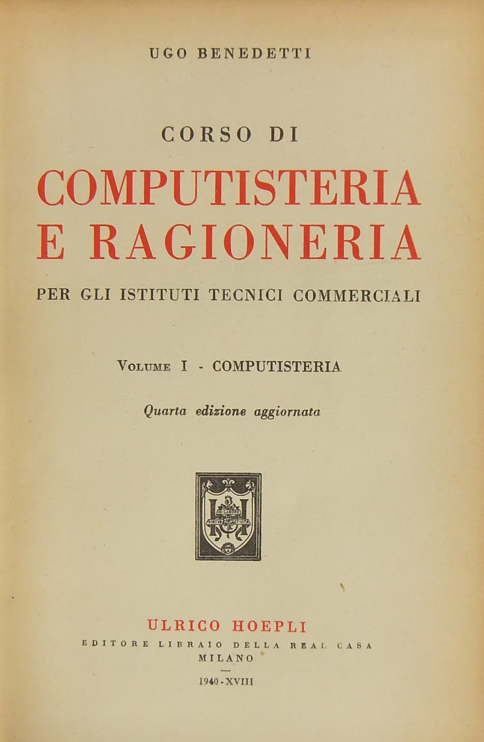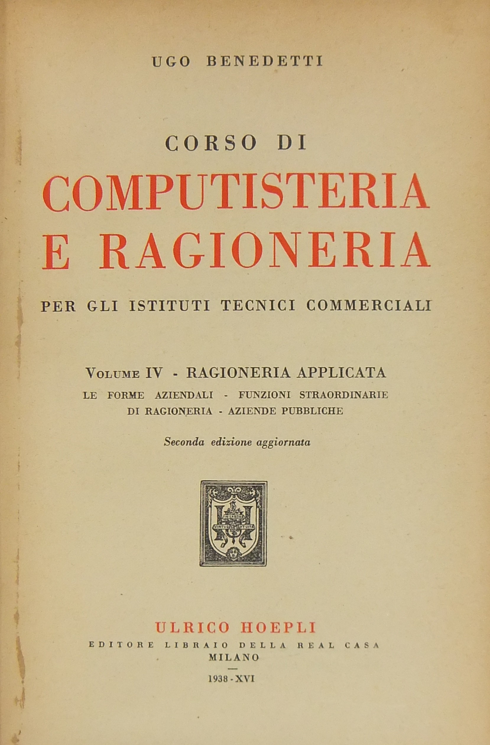 Corso di computisteria e ragioneria per gli istituti tecnici commerciali. Vol. I - Computisteria; Vol. II - Ragioneria generale; Vol. III - Ragioneria applicata. Le imprese commerciali; Vol. IV - Ragioneria applicata. Le forme aziendali funzioni straordinarie di ragioneria aziende pubbliche