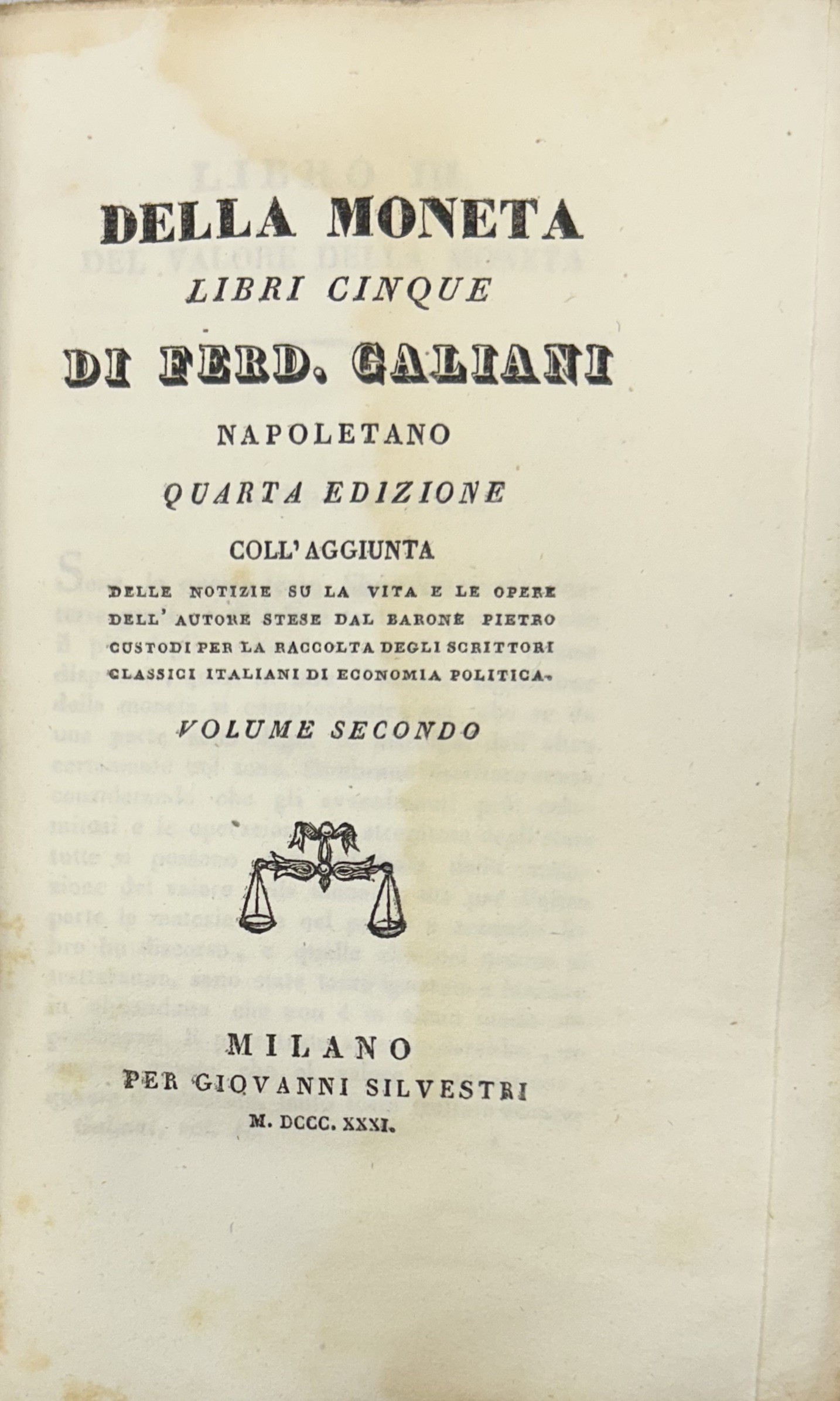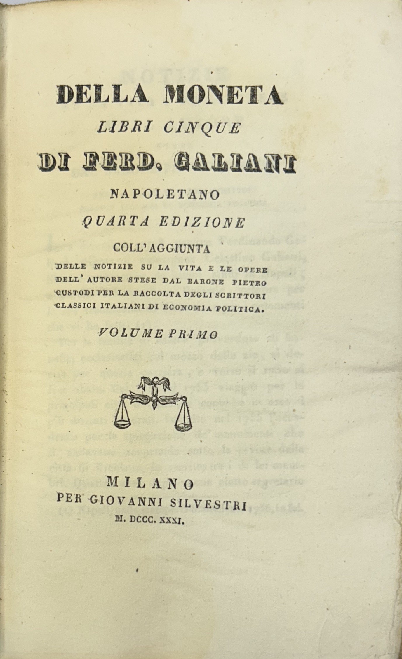Quarta edizione coll'aggiunta delle notizie su la vita e le opere dell'autore stese dal Barone Pietro Custodi per la raccolta degl scrittori classici italiani di economia politica