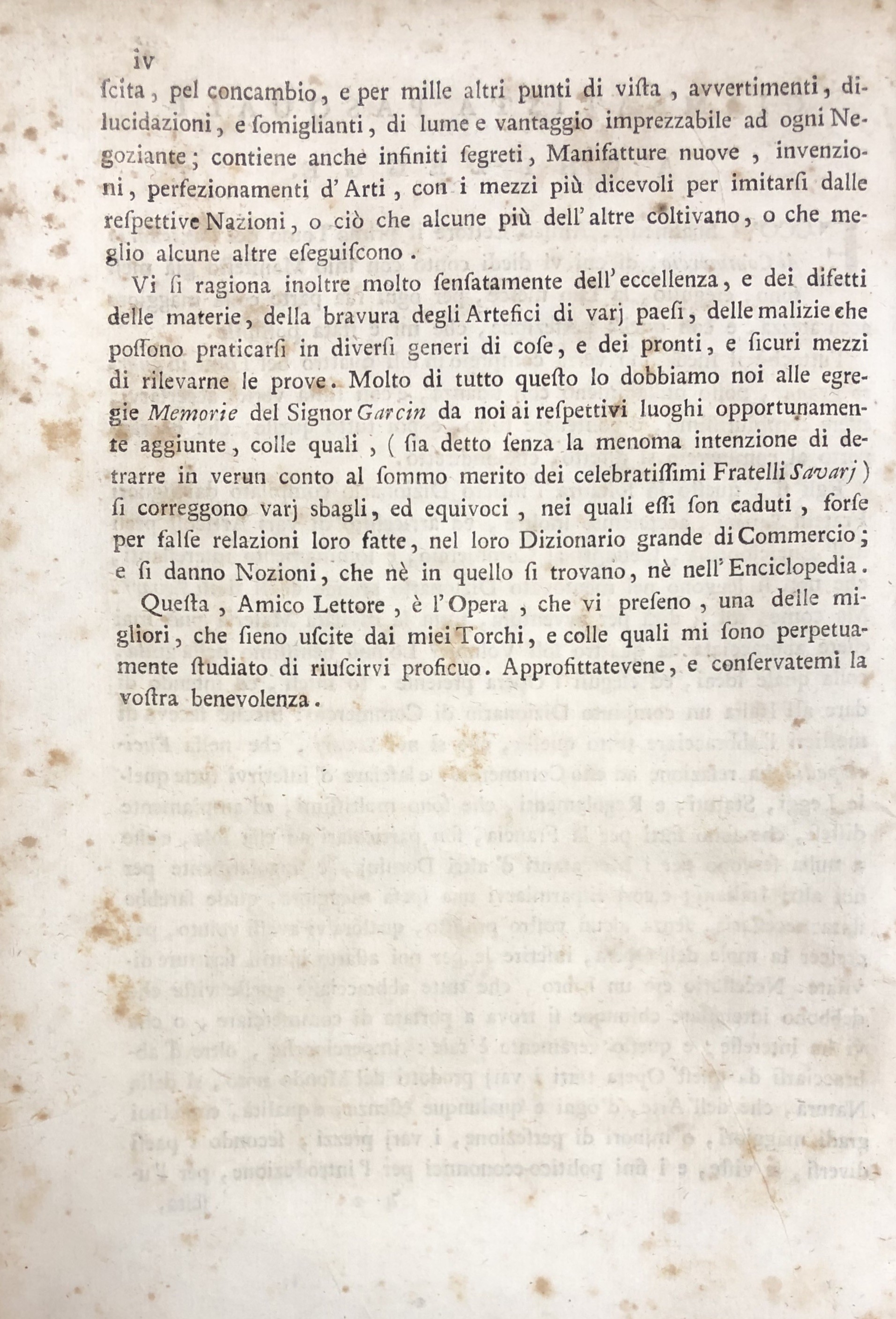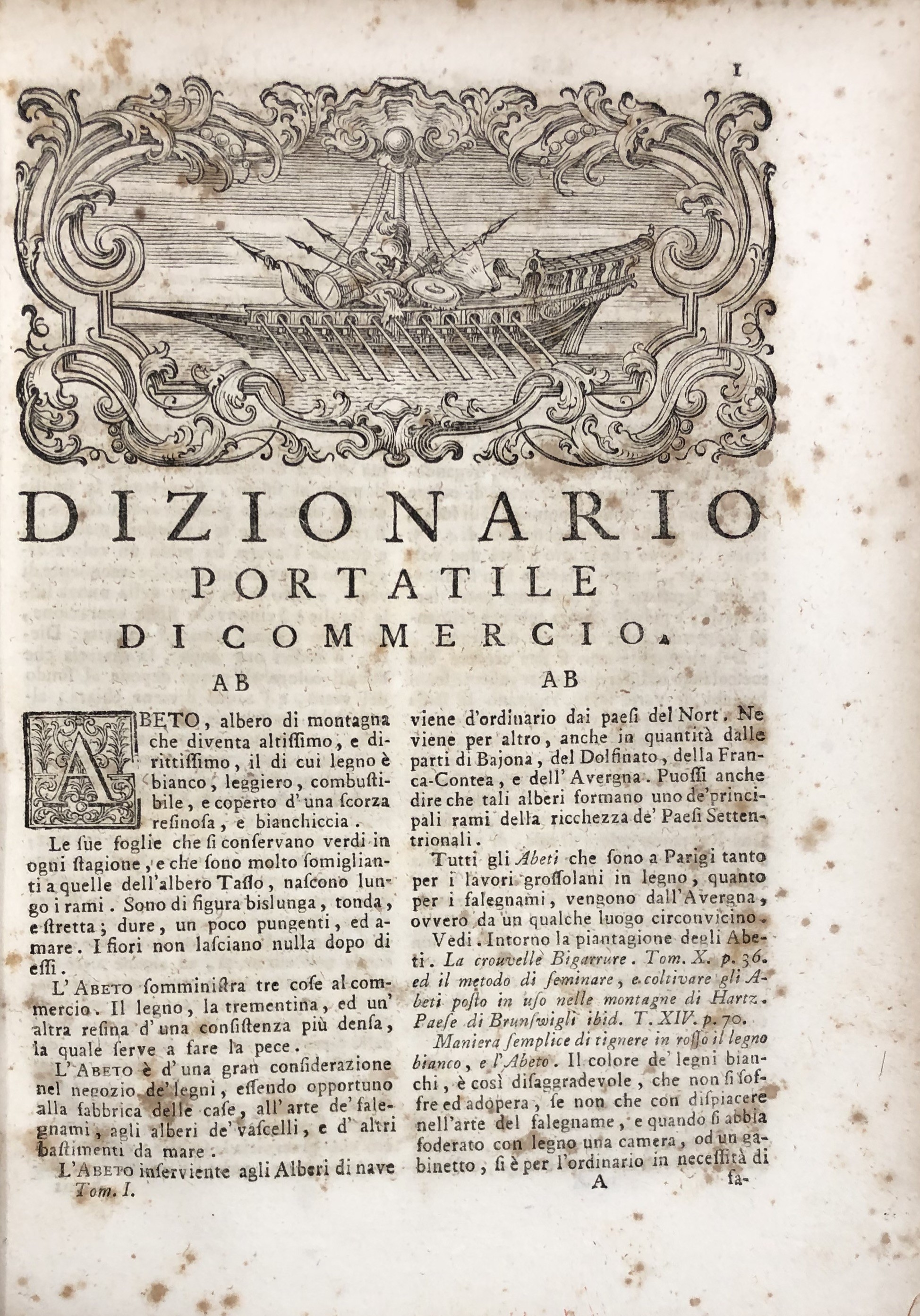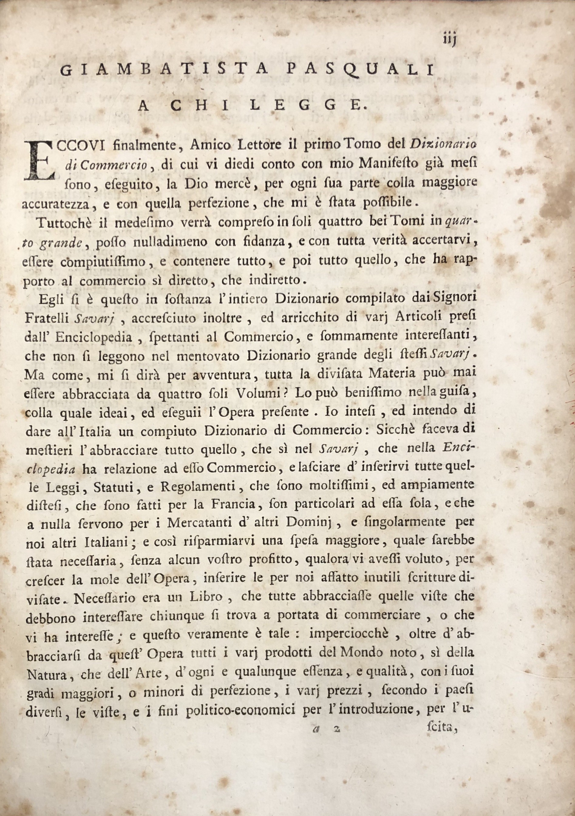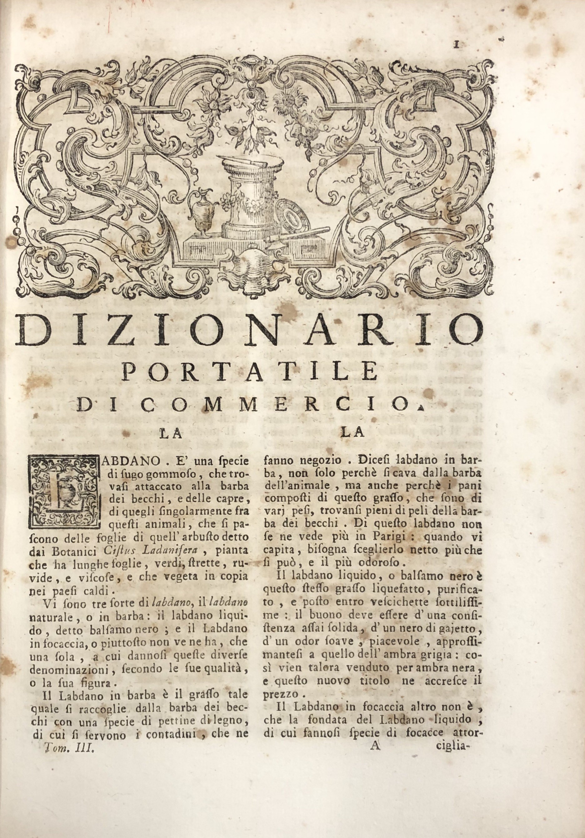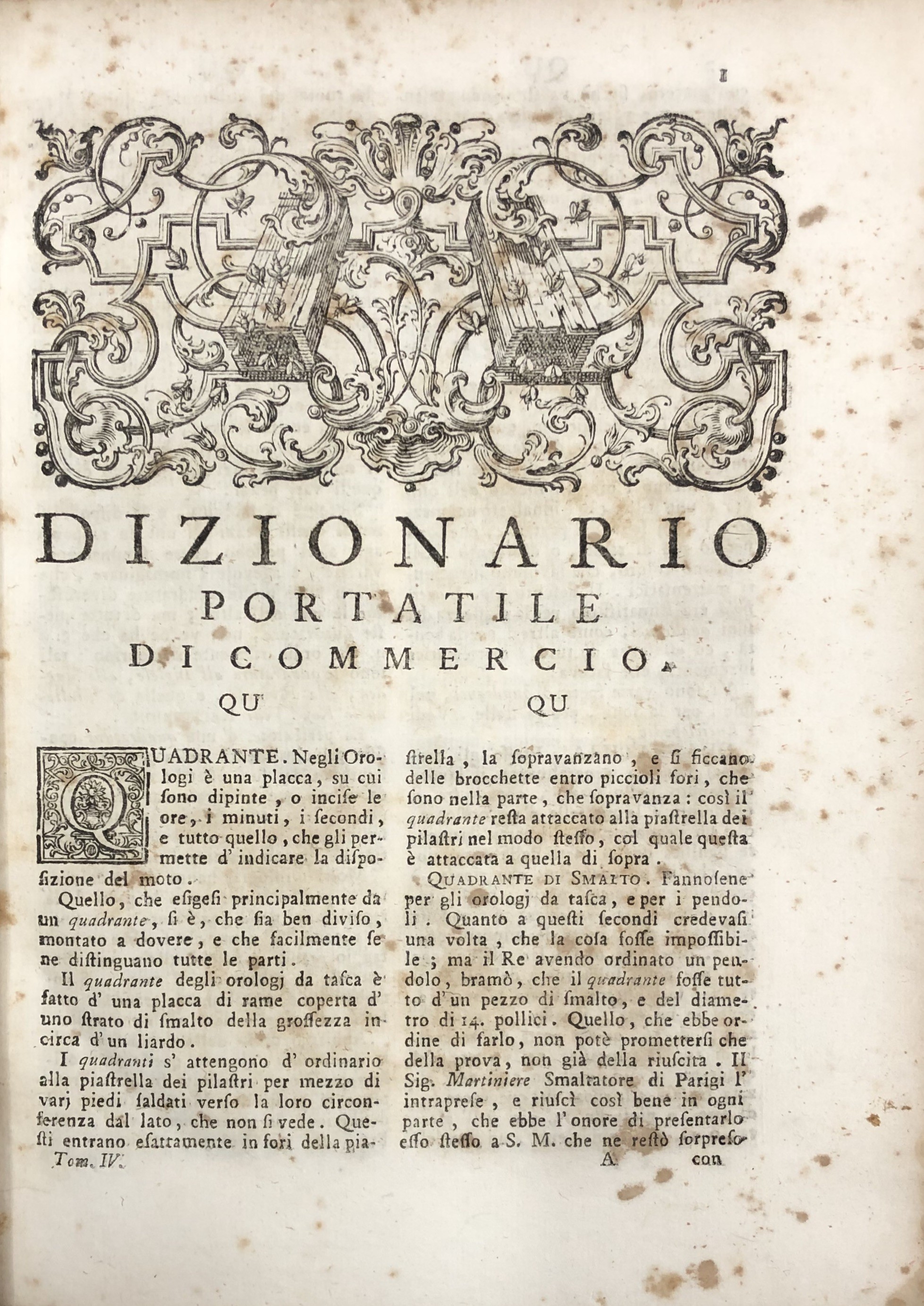 Dizionario di commercio dei signori fratelli Savary, che comprende la cognizione delle merci d'ogni paese; ovvero i principali, e i nuovi articoli risguardanti il commercio, l'economia rurale, le finanze, le arti, le manifatture, le fabbriche, la mineralogia, le droghe, le piante, le gemme, ec. ec. Edizione prima italiana. Vol. I - AB-CL; Vol. II - CO-KU; Vol. III - LA-PU; Vol. IV - QU-ZU