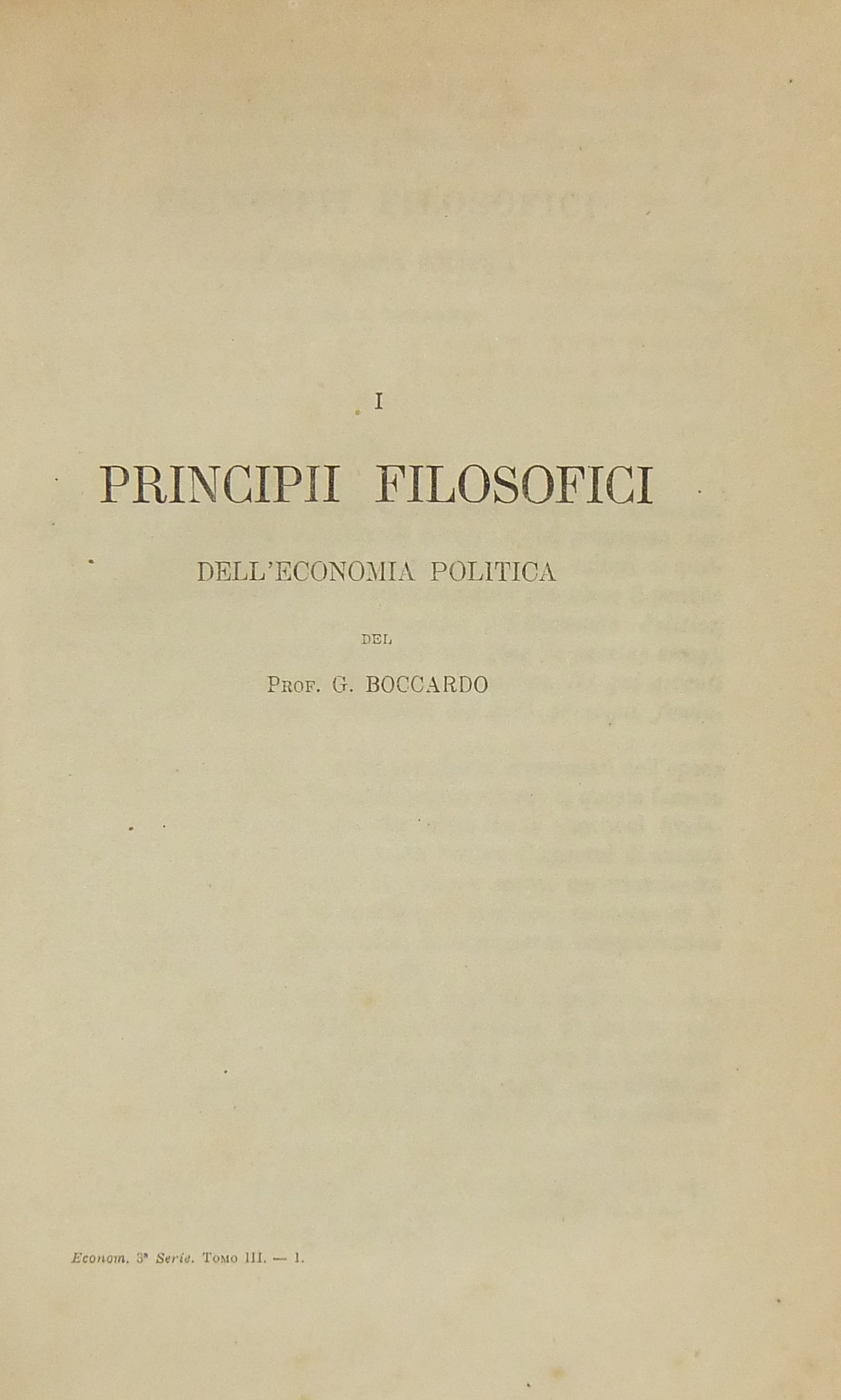 I principii di filosofia economica. Prefazione di Gerolamo Boccardo I principii filosofici dell'economia politica