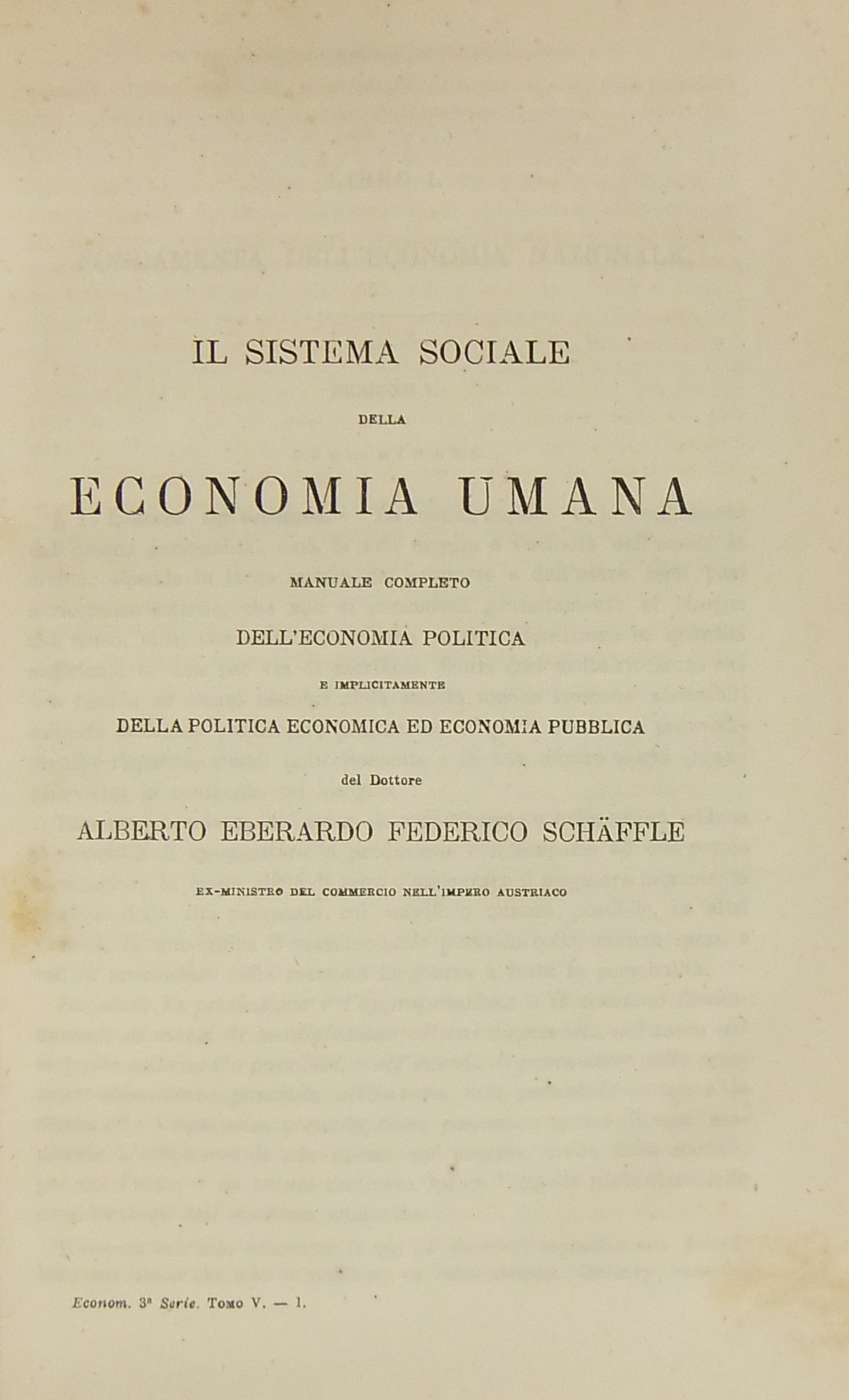 Il sistema sociale dell'economia umana. Prefazione di Gerolamo Boccardo
