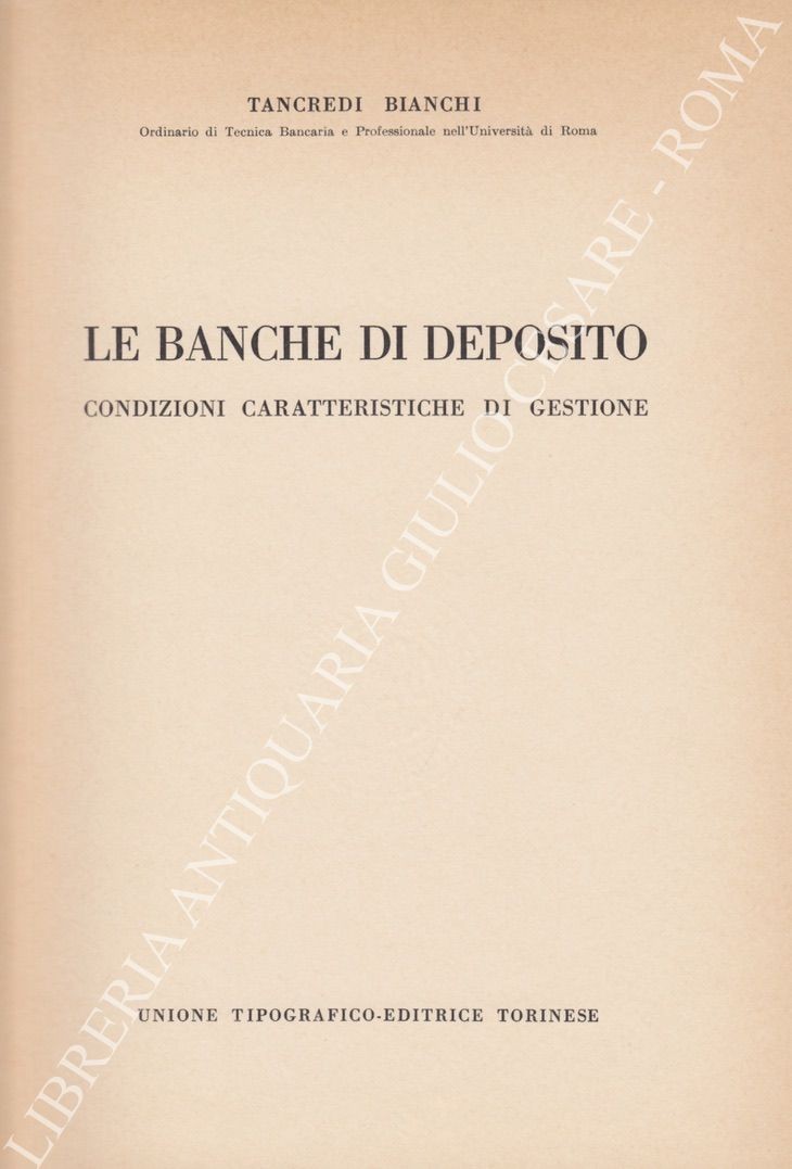 Le banche di deposito. Condizioni caratteristiche di gestione
