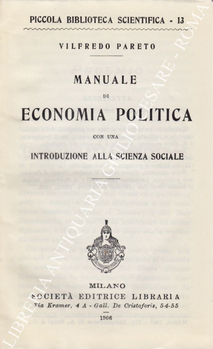 Particolarmente rara. Si tratta di un'opera di sintesi in cui Pareto presenta una teoria generale dell'equilibrio economico notevolmente più raffinata di quella di Walras