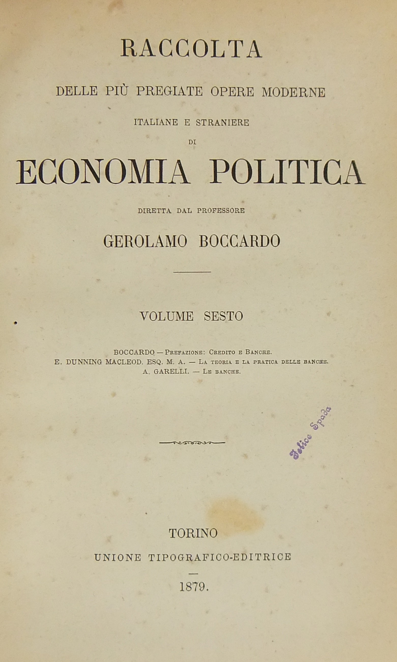 Prefazione Credito e banche (Boccardo). La teoria e la pratica delle banche (Mac Leod). Le banche (Garelli)