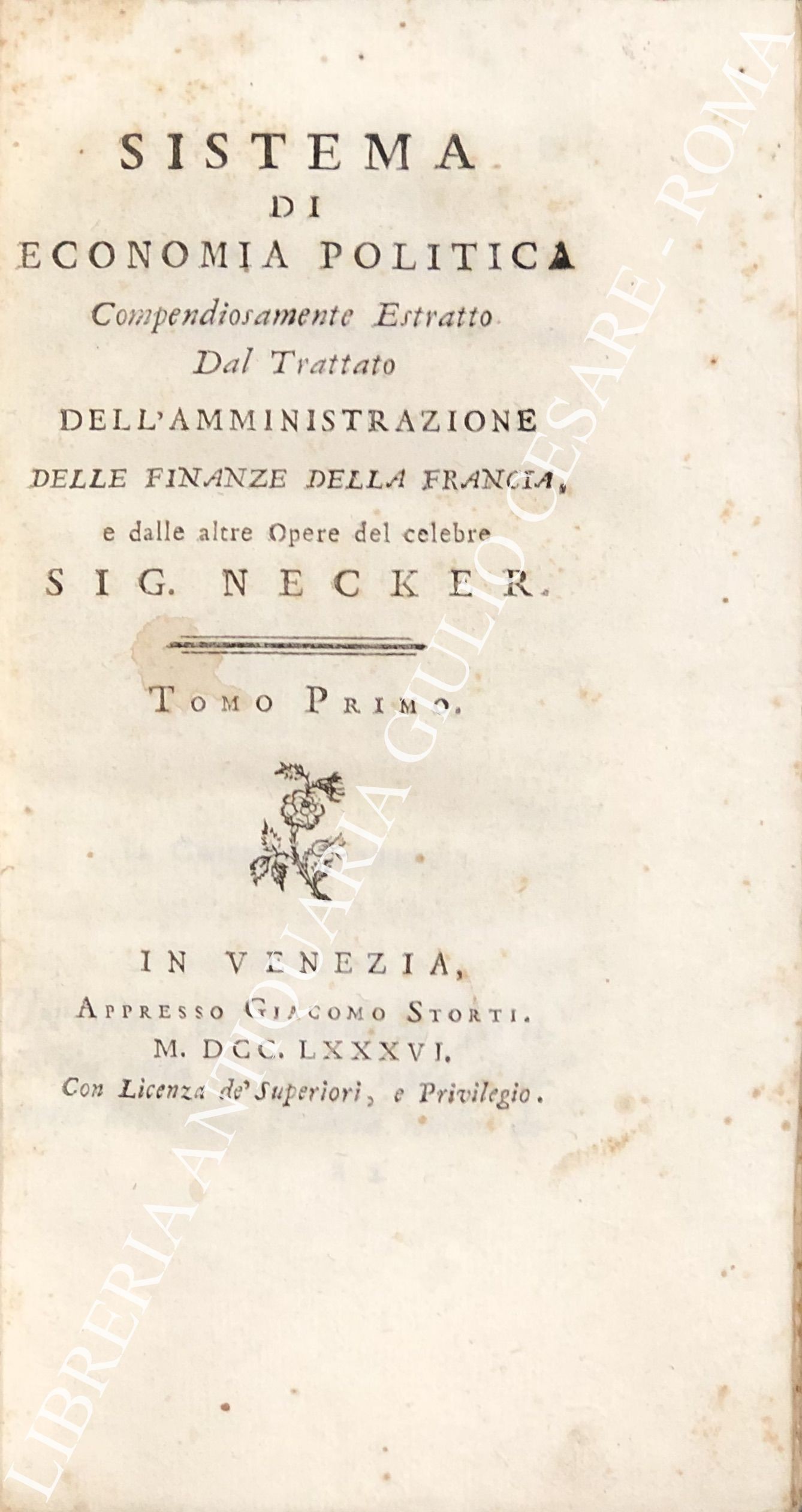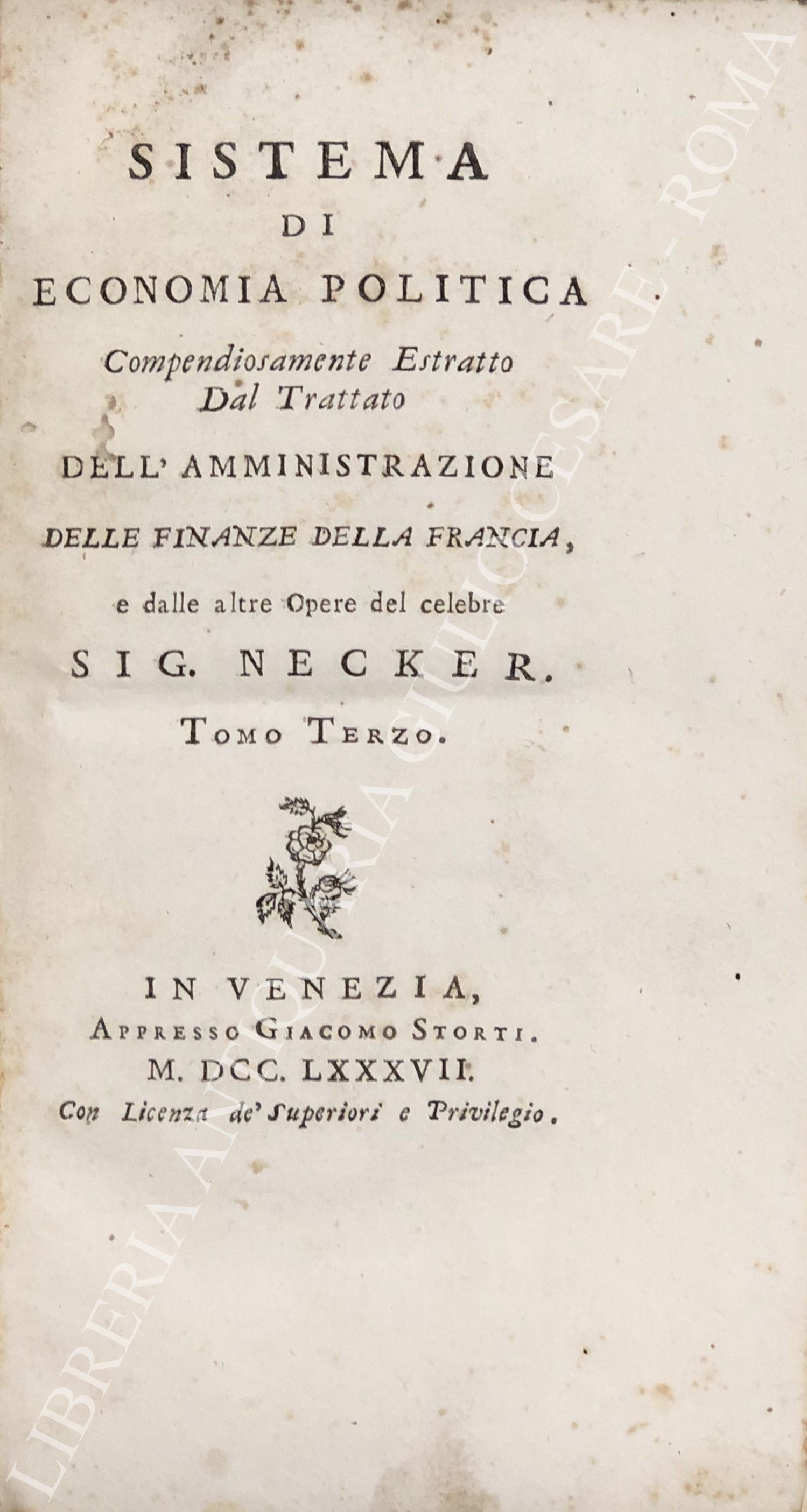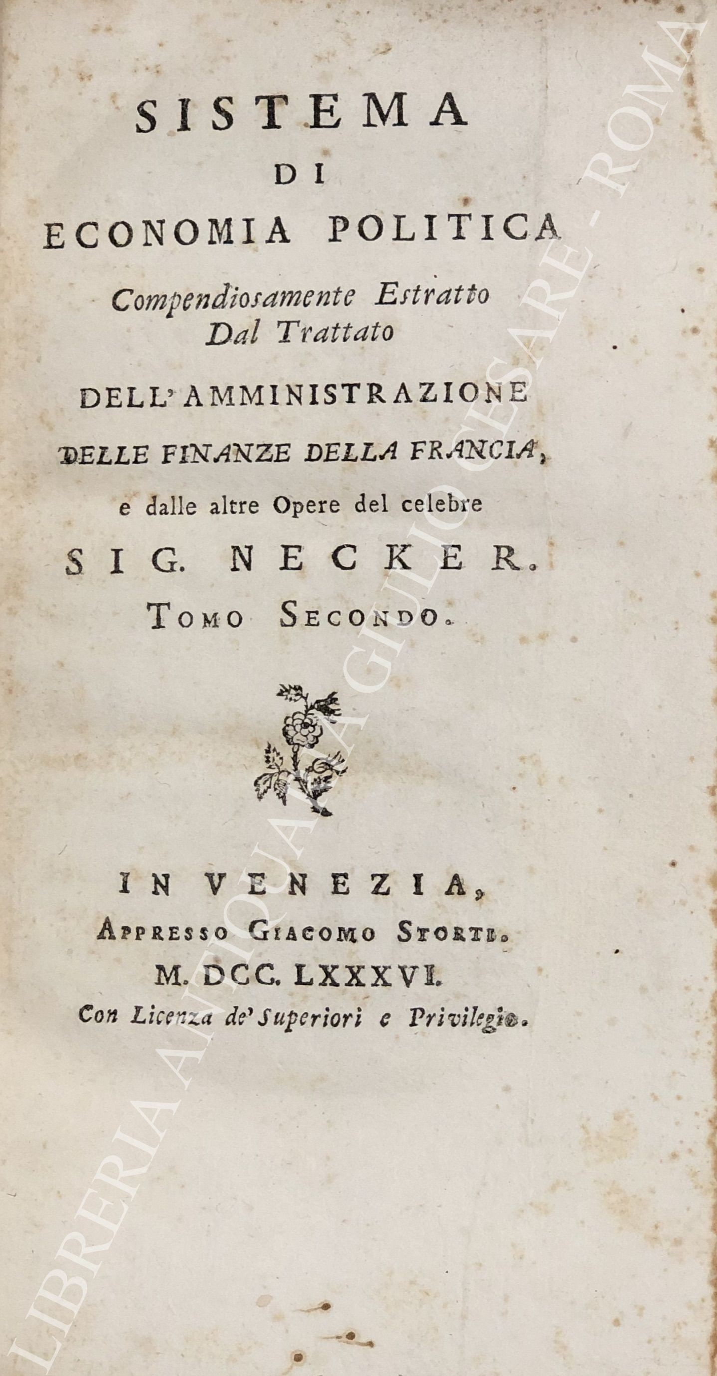 Sistema di economia politica compendiosamente estratto dal trattato dell'amministrazione delle finanze della Francia e delle altre opere del celebre Sig. Necker