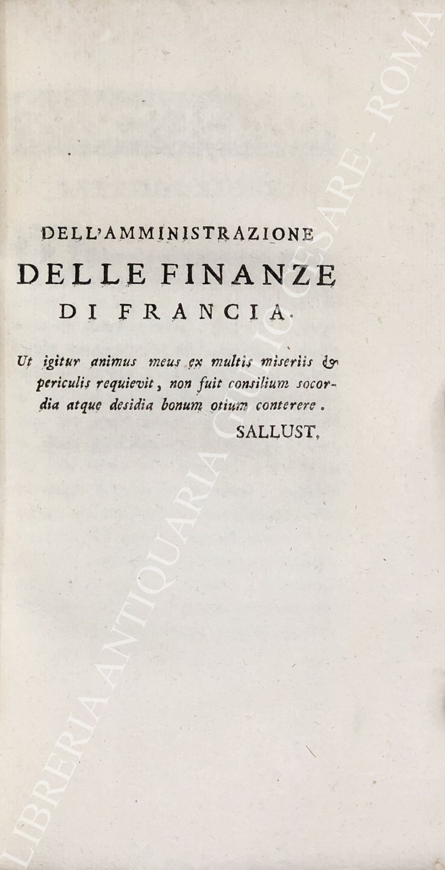 Opera completa del celebre economista francese con ritratto dell'Autore inciso in rame da Gio. de Pian all'inizio del primo volume