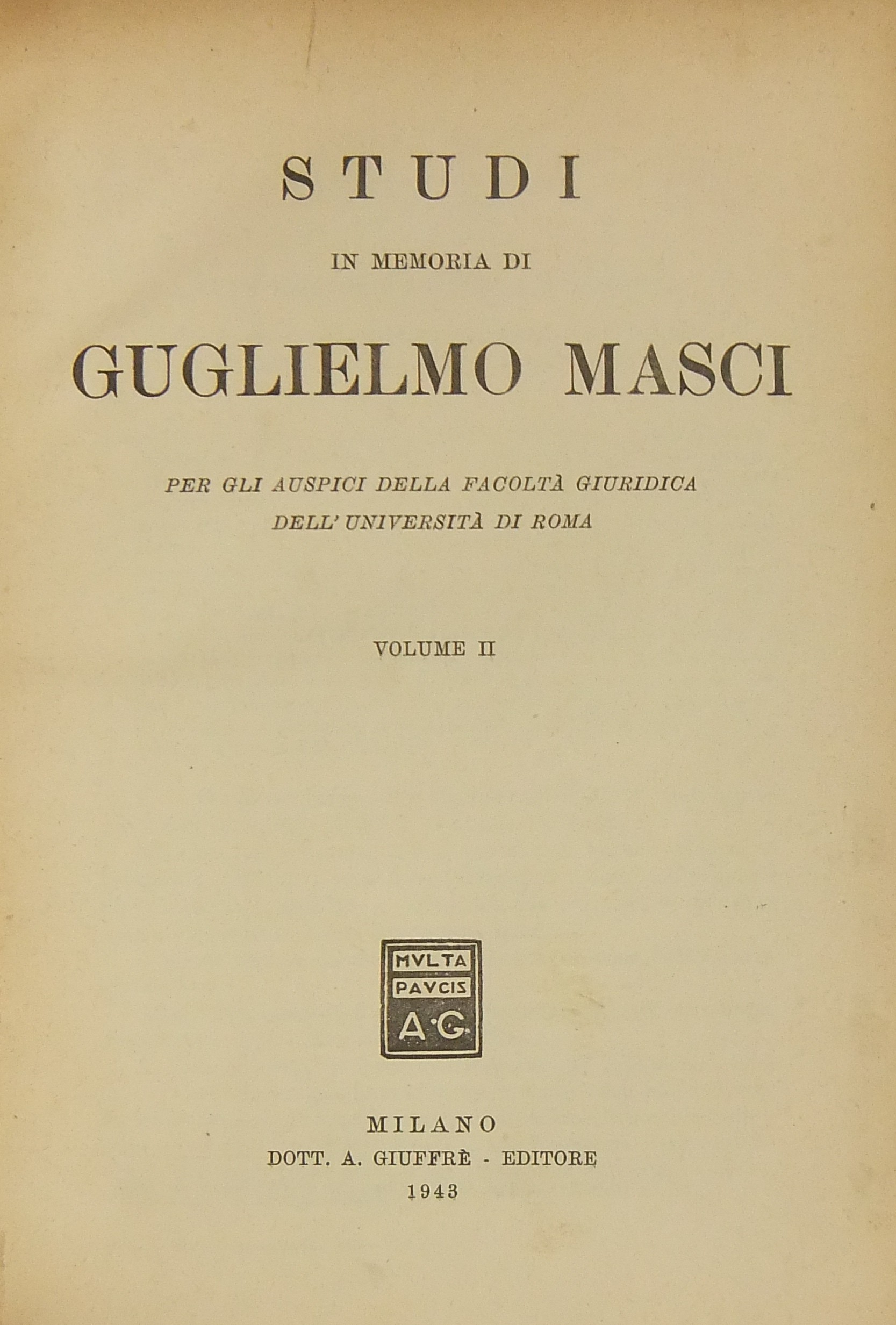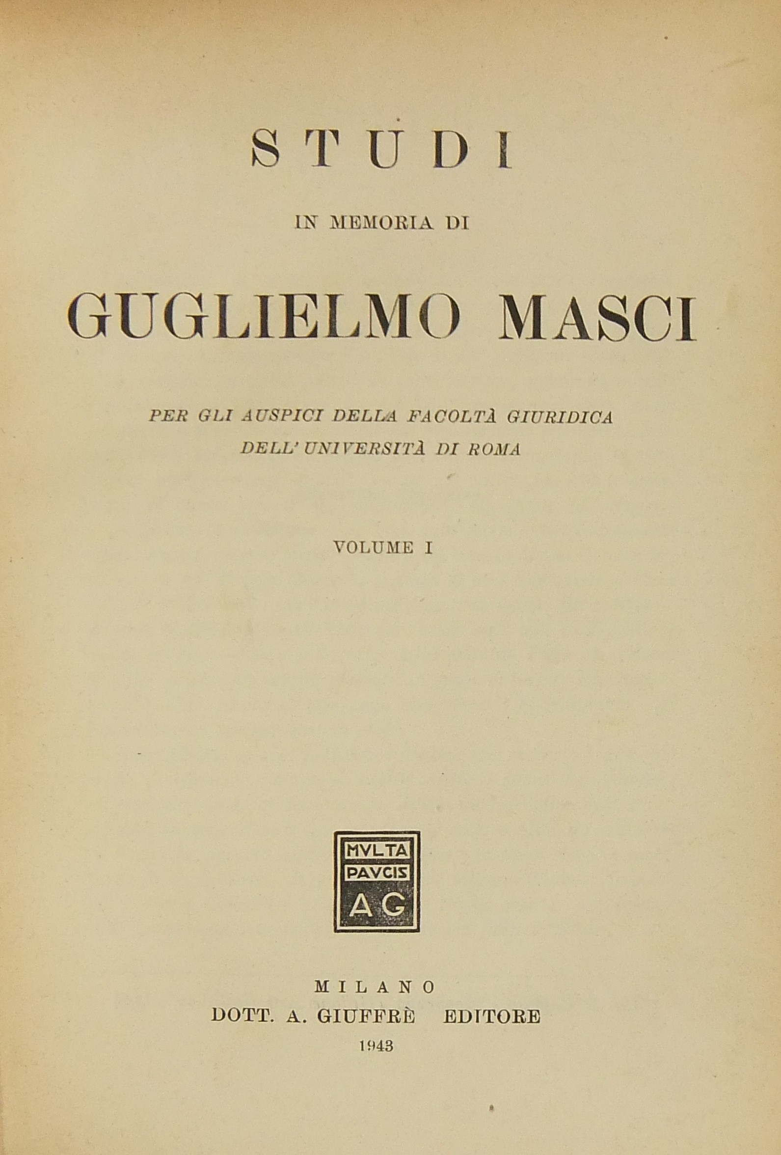 Studi in memoria di Guglielmo Masci. Per gli auspici della Facoltà giuridica dell'Università di Roma