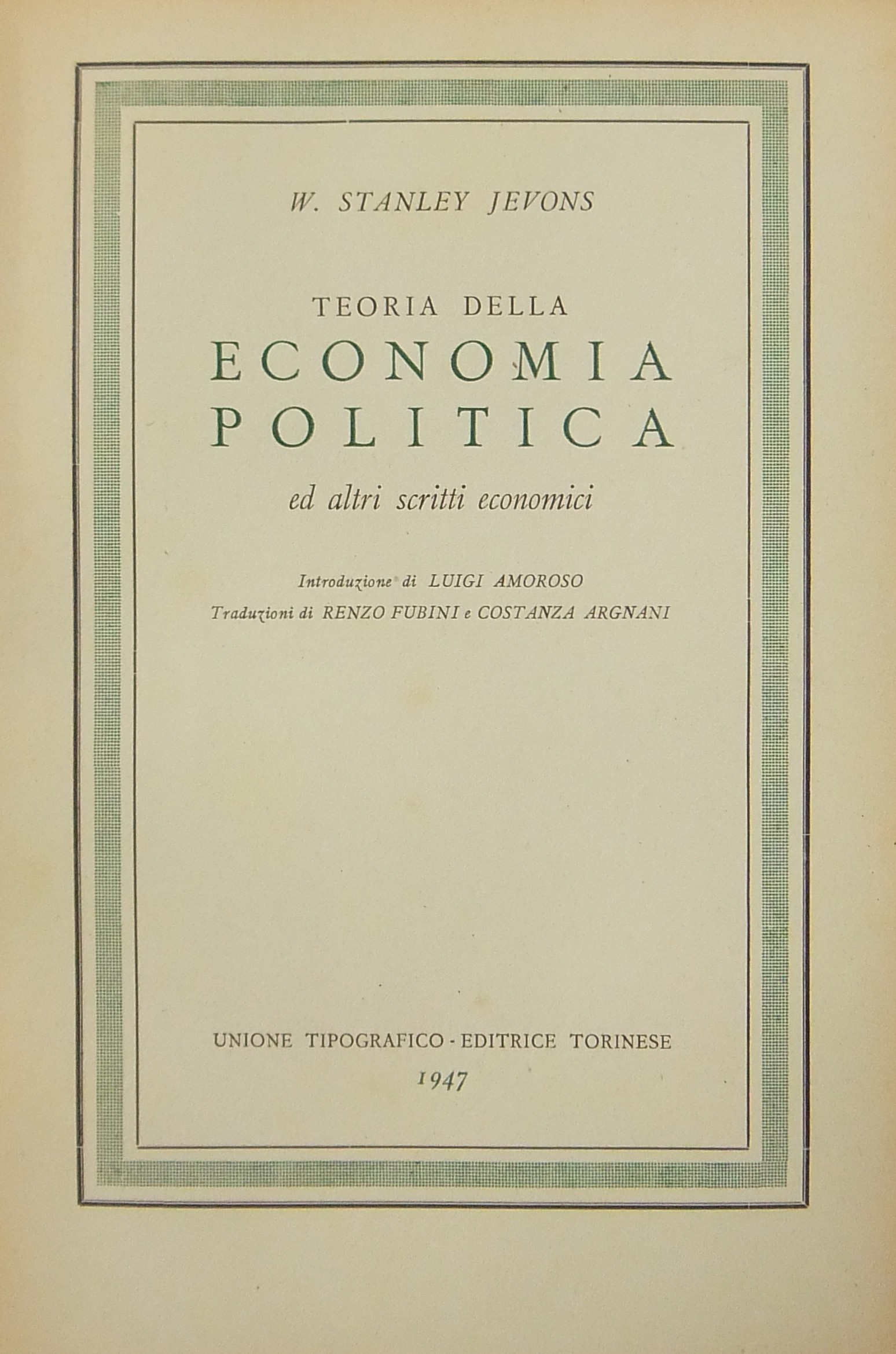 Teoria della economia politica ed altri scritti economici. Introduzione di Luigi Amoroso. Traduzione di Renzo Fubini e Costanza Argnani