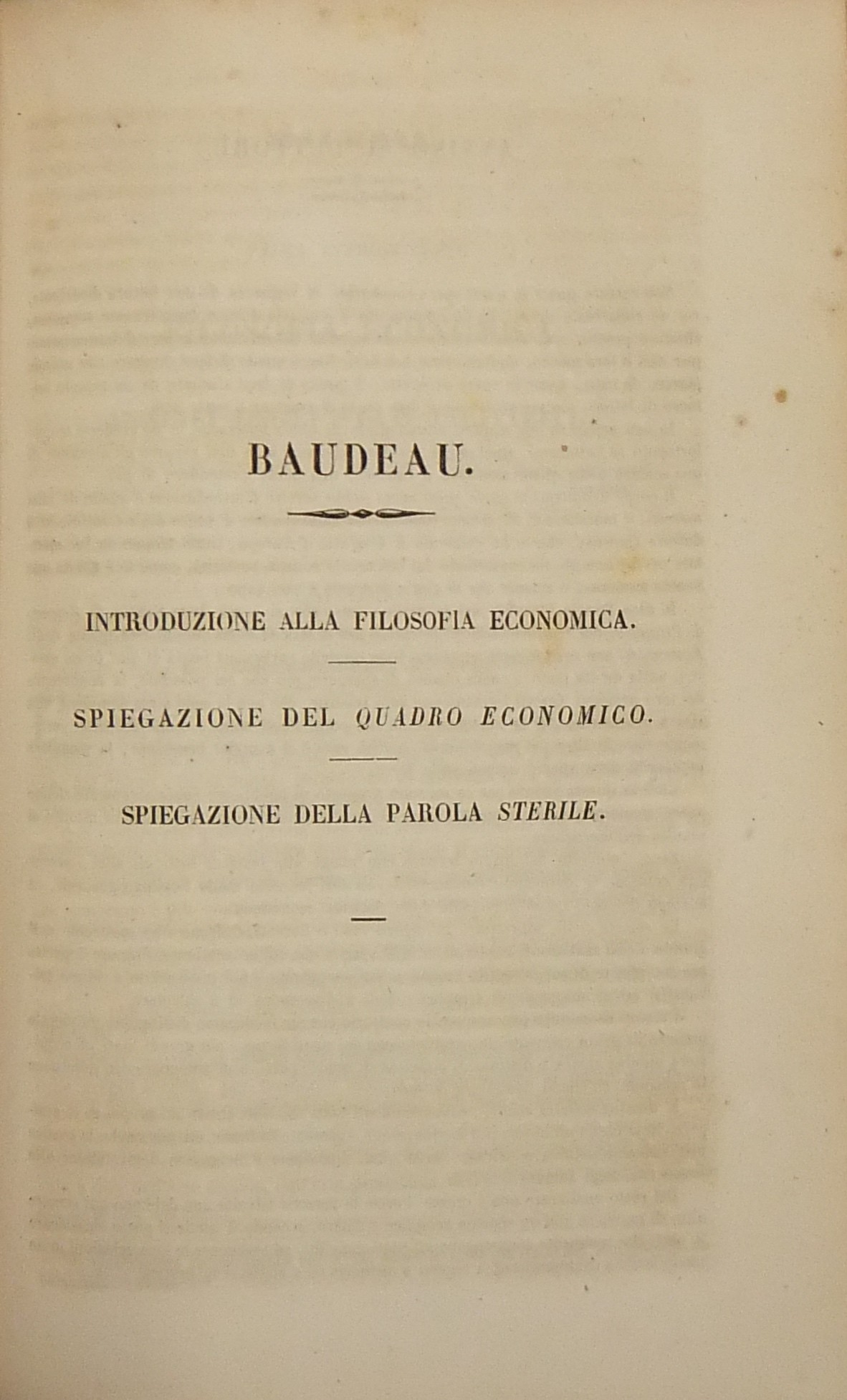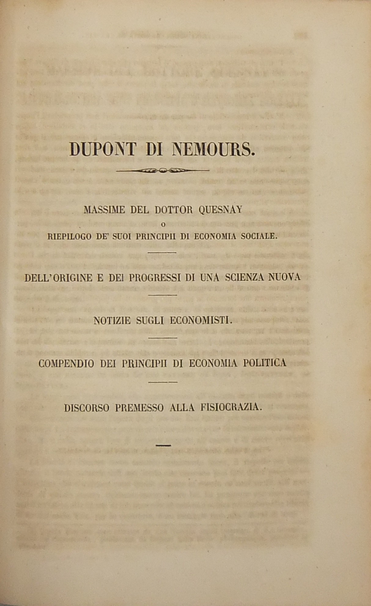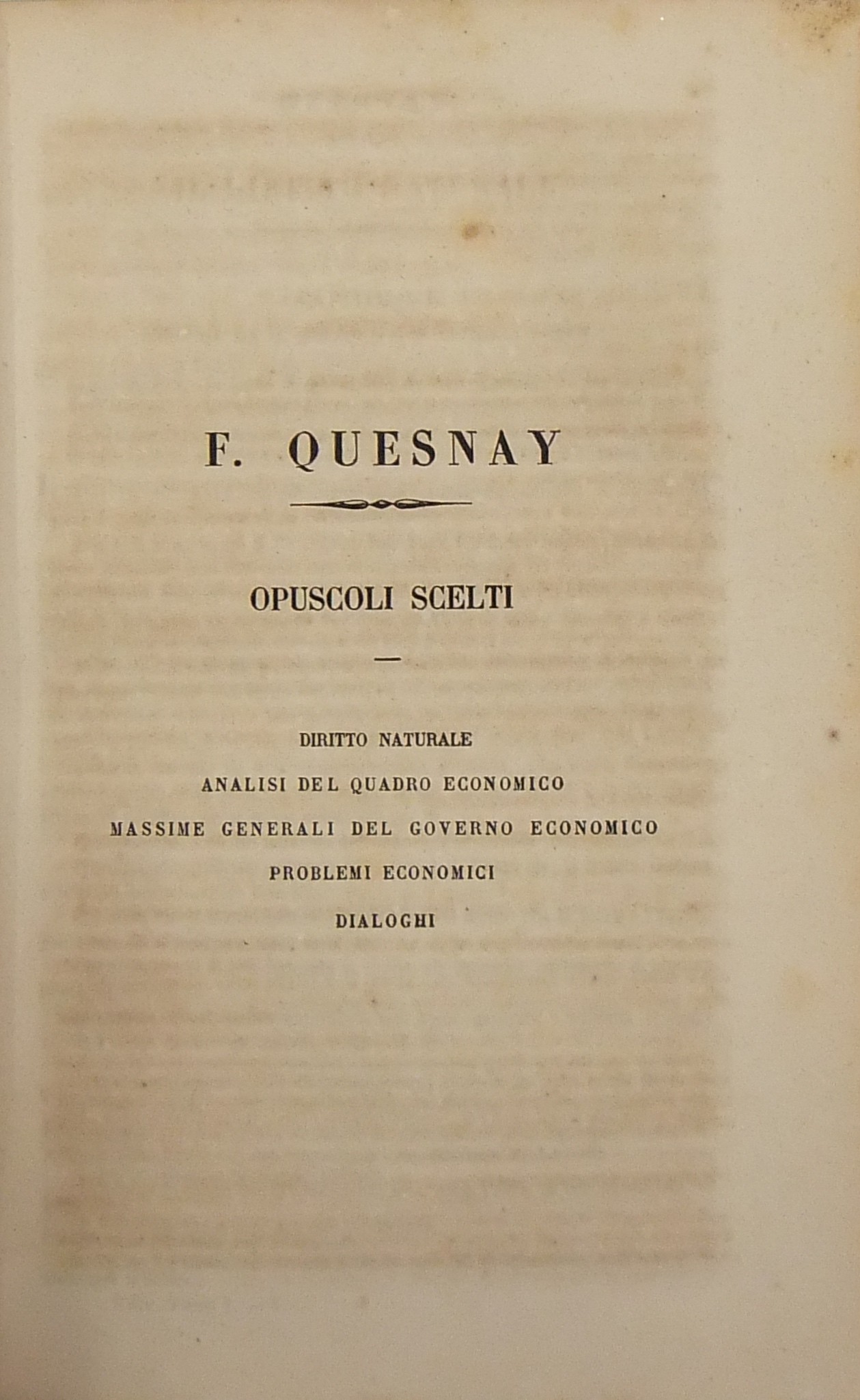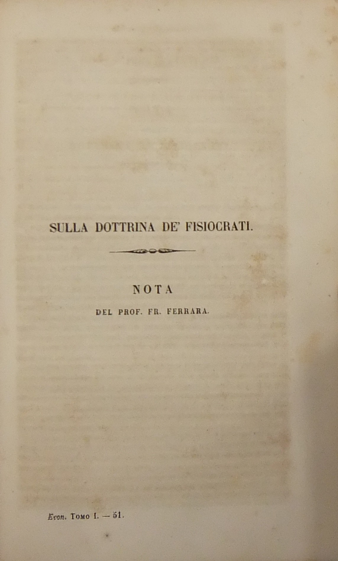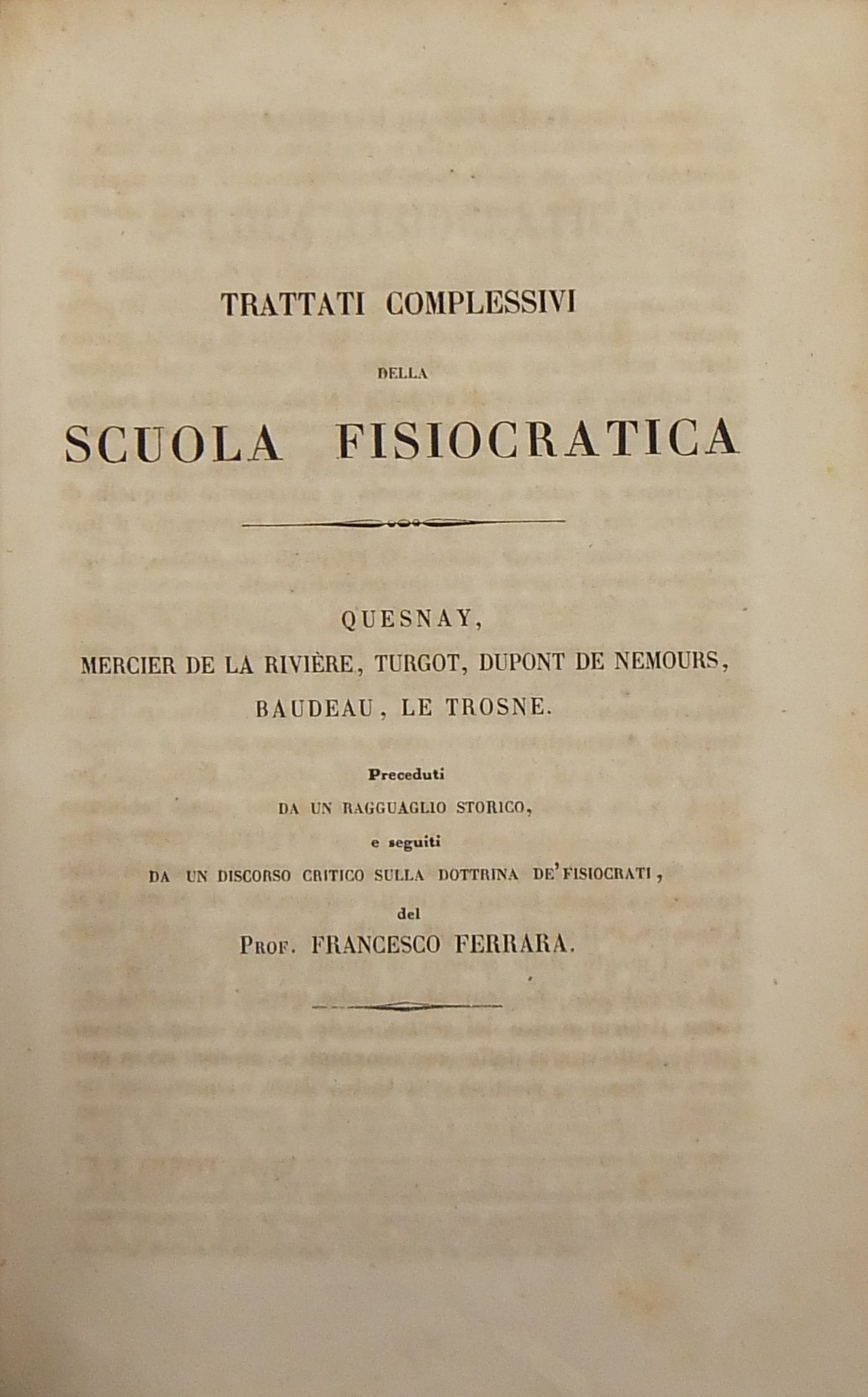 Trattati complessivi della Scuola Fisiocratica. Preceduti da un Ragguaglio storico e seguiti da un Discorso critico sulla dottrina de' Fisiocrati del Prof. Francesco Ferrara