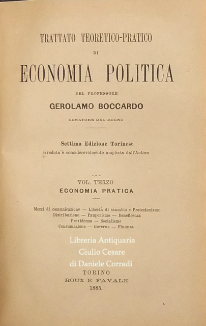 Trattato teorico-pratico di economia politica. Vol. I - Economia teoretica; Voll. II e III - Economia pratica