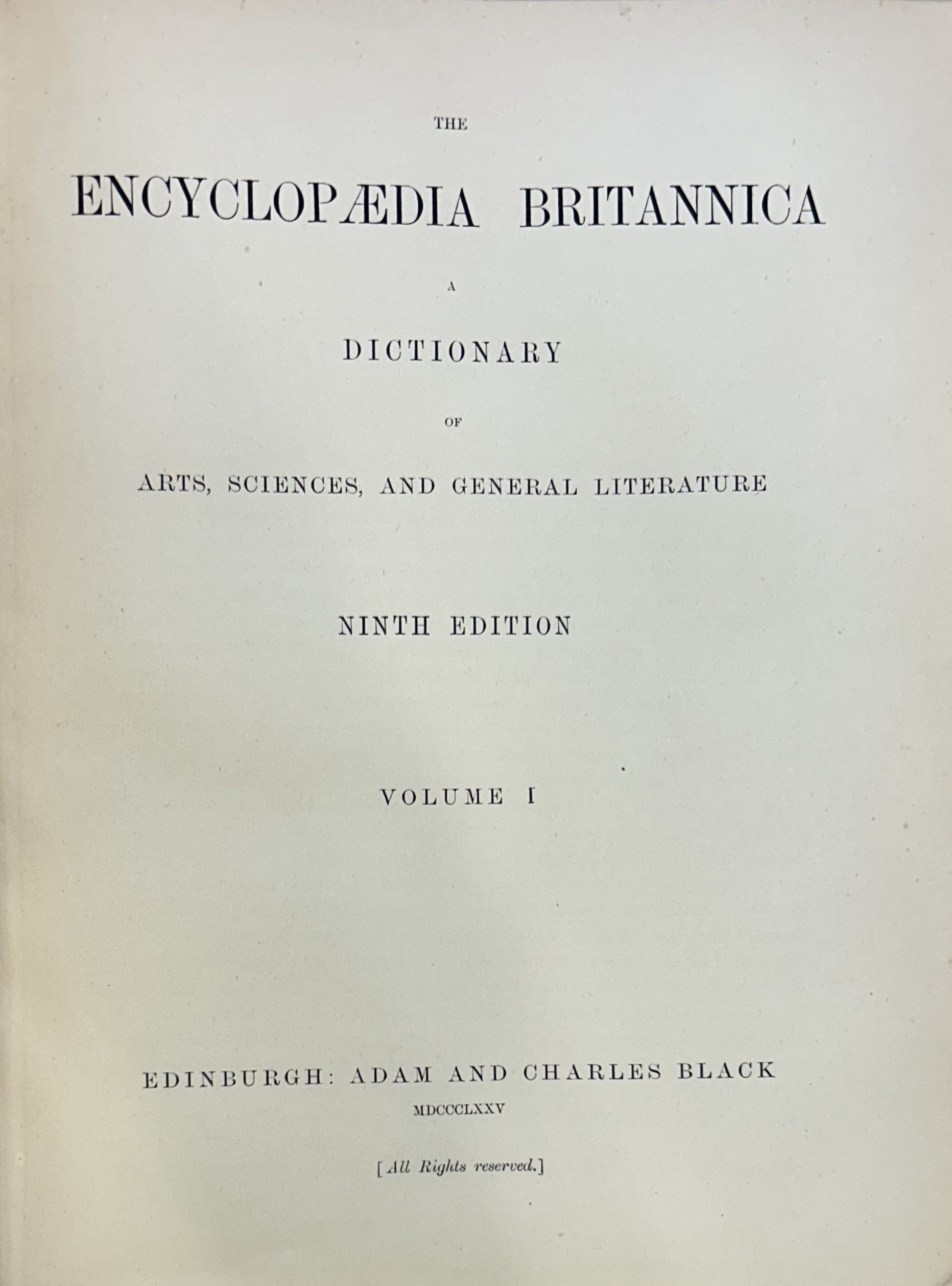 The Encyclopaedia Britannica. A dictionary of arts, sciences and general literature