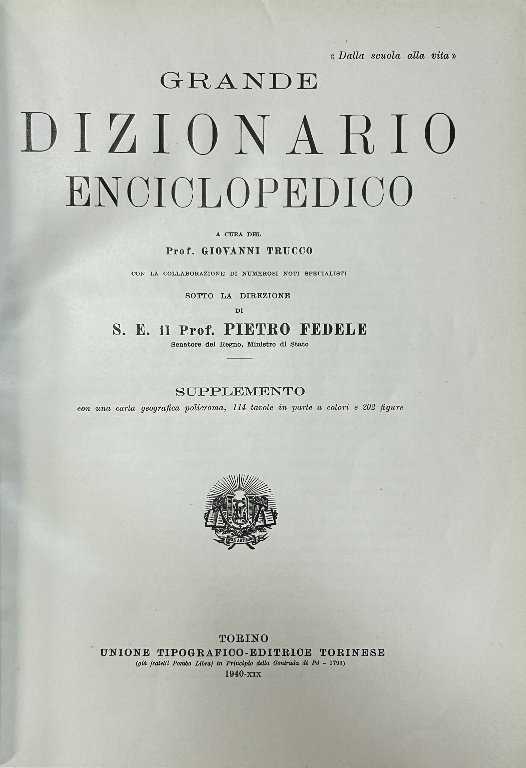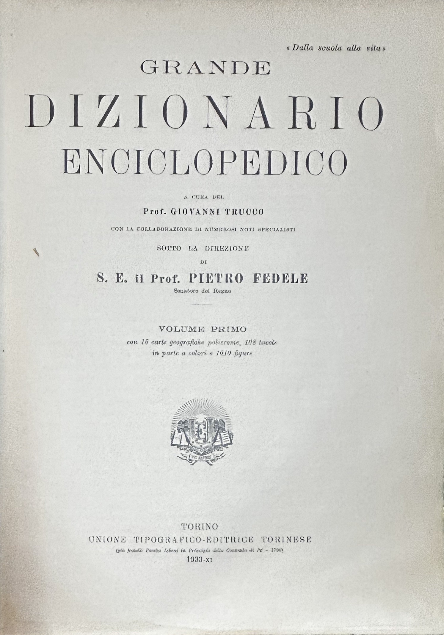Grande dizionario enciclopedico. A cura del prof. Giovanni Trucco con la collaborazione di numerosi noti specialisti sotto la direzione di S.E. il Prof. Pietro Fedele