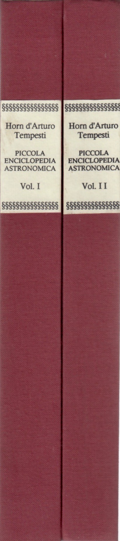 Piccola Enciclopedia Astronomica. Vol. I - Repertorio alfabetico esplicativo dei vocaboli usati nel linguaggio astronomico; Vol. II - Vita ed opere degli astronomi: dai primitivi a quelli vissuti non oltre il sec. XIX