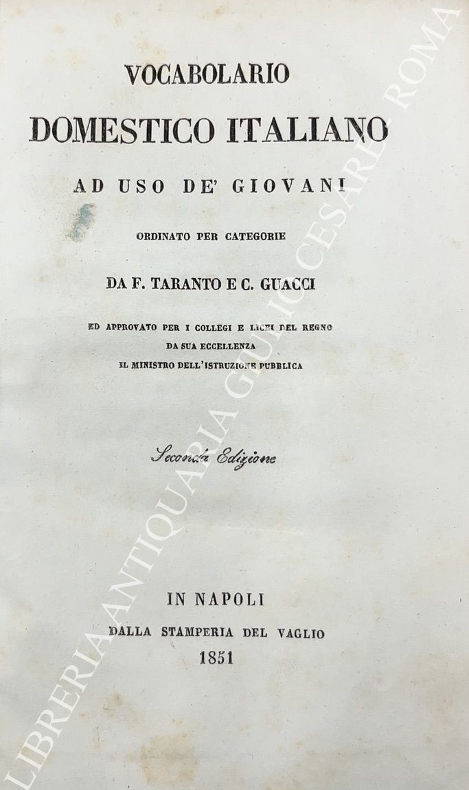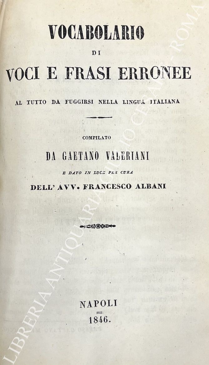 Vocabolario domestico italiano ad uso de giovani ordinato per categorie ed approvato per i collegi e licei del Regno da sua eccellenza il Ministro dell'Istruzione Pubblica. UNITO A: Vocabolario di voci e frasi erronee al tutto da fuggirsi nella lingua italiana dato in luce per cura dell'avv. Francesco Albani