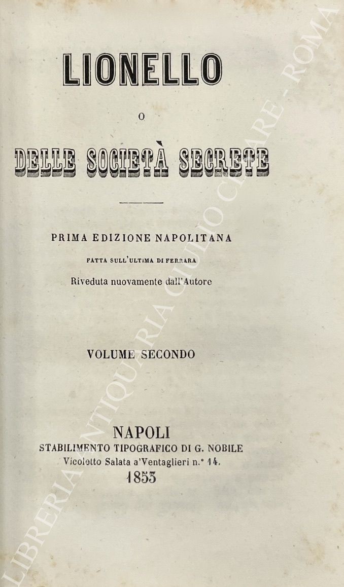 Prima edizione napolitana fatta sull'ultima di Ferrara. Riveduta nuovamente dall'AutoreLuogo: Napoli