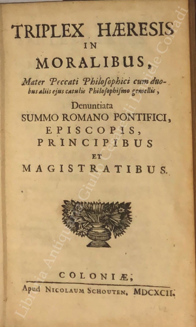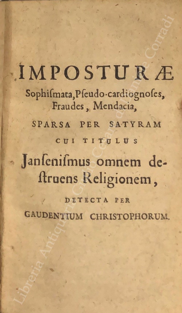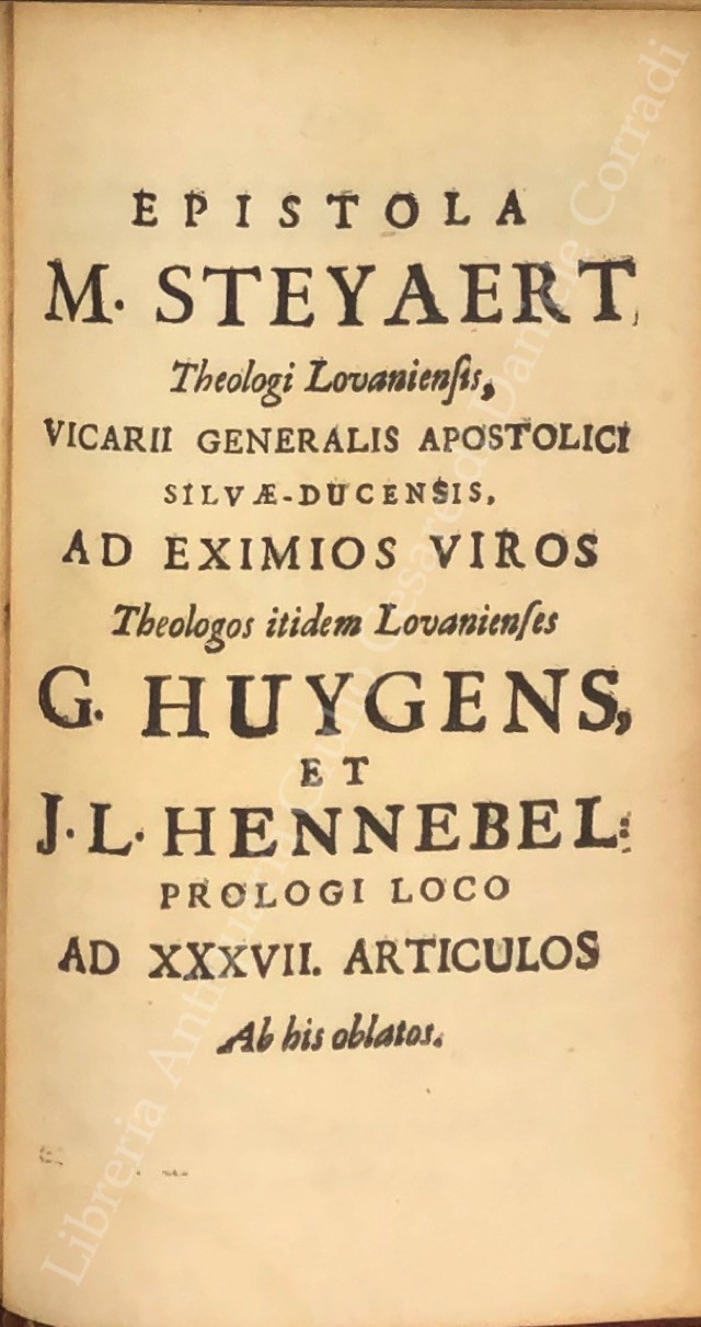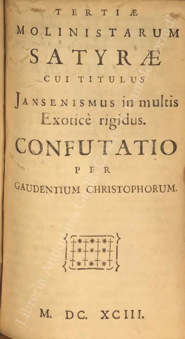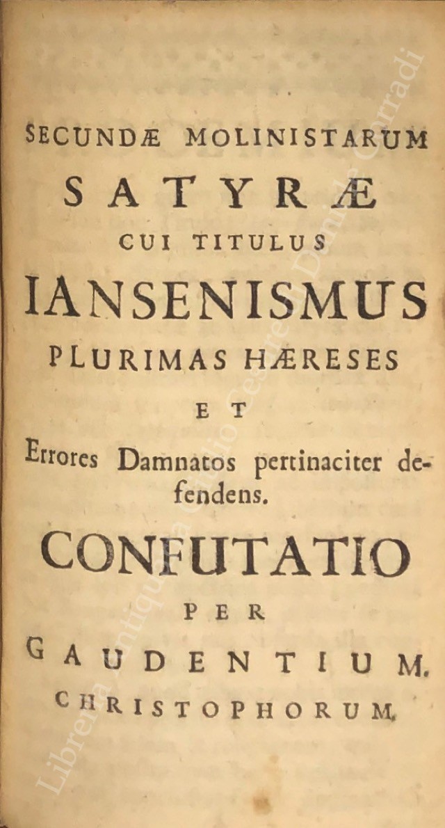 Triplex haeresis in moralibus, mater peccati philosophici cum duobus aliis ejus catulis philosophismo gemellis, denuntiata summo Romano pontifici, episcopis, principibus et magistratibus; UNITO A: Phrenesis molinistica se exerens in scripto famoso, cui titulus Jansenismus omnem destruens religionem. Demonstrante Joanne Aurelio theol.; UNITO A: Imposturae Sophismata, Pseudo-cardiognoses, Fraudes, Mendacia, sparsa per satyram cui titulus Jansenismus omnem destruens religionem, detecta per Gaudentium Christophorum; UNITO A: Secundae molinistarum satyrae cui titulus Iansenismus plurimas haereses et errores damnatos pertinaciter defendens. Confutatio per Gaudentium Christophorum; UNITO A: Tertiae molinistarum satyrae cui titulus Jansenismus in multis exoticè rigidus. Confutatio per Gaudentium Christophorum; UNITO A: Refutatio brevis libelli, cui titulus: Indices Opinationum R.di ac Eruditiss.mi D. Domini Henrici Denys; UNITO A: Articuli oblati eximiis dominis Harney et Steyaert S. Th. doctoribus ac professoribus regentibus. Cum illorum declaratione; UNITO A: Epistola M. Steyaert Theologi Lovaniensis, vicarii generalis apostolici silvae ducensis ad eximios viros Theologos itidem Lovanienses G. Huygens et J. L. Hennebel prologi loco ad XXXVII articulus