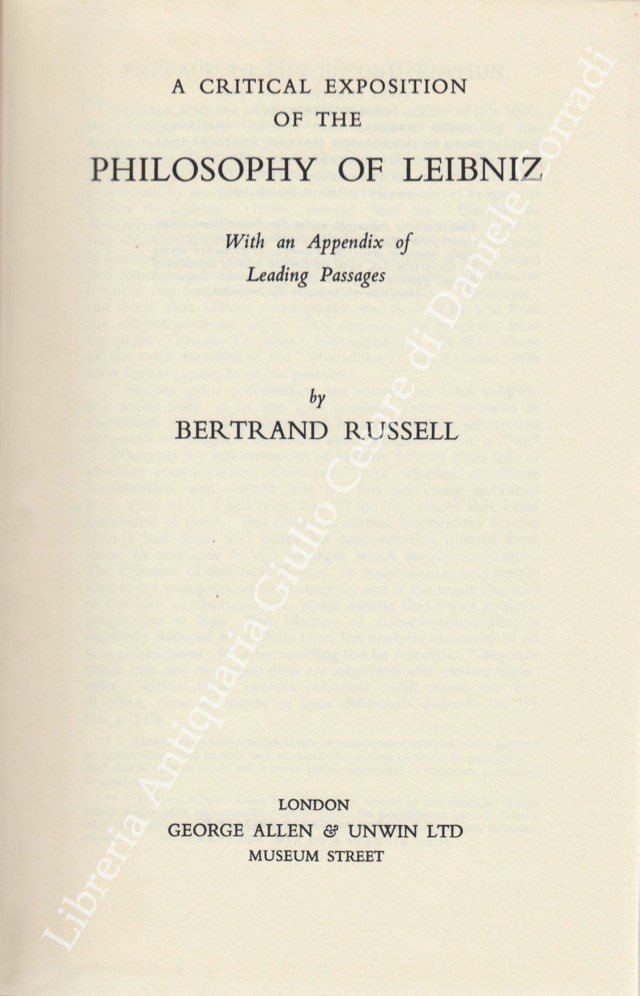 A critical exposition of the philosophy of Leibniz with an Appendix of Leading Passages