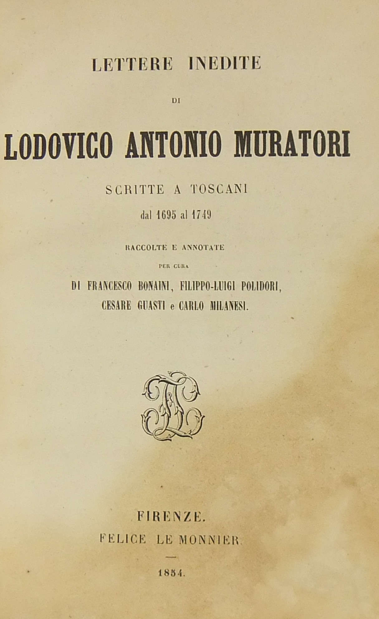 Lettere inedite scritte a toscani dal 1695 al 1749. Raccolte ed annotate per cura di Francesco Bonaini Filippo-Luigi Polidori Cesare Guasti e Carlo Milanesi