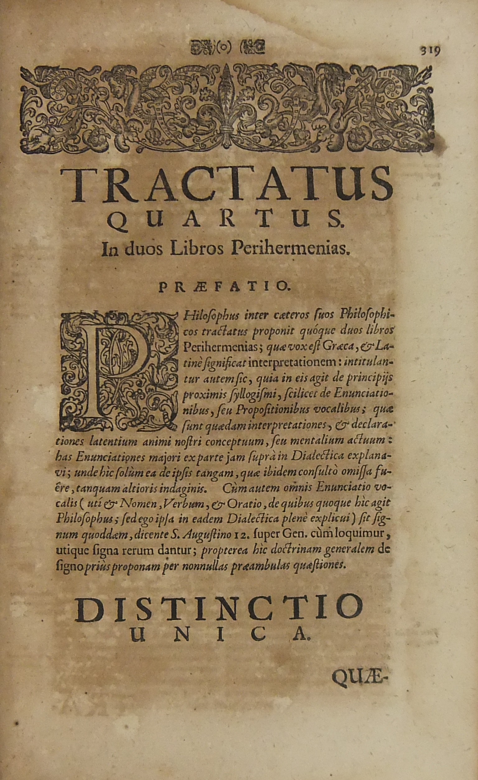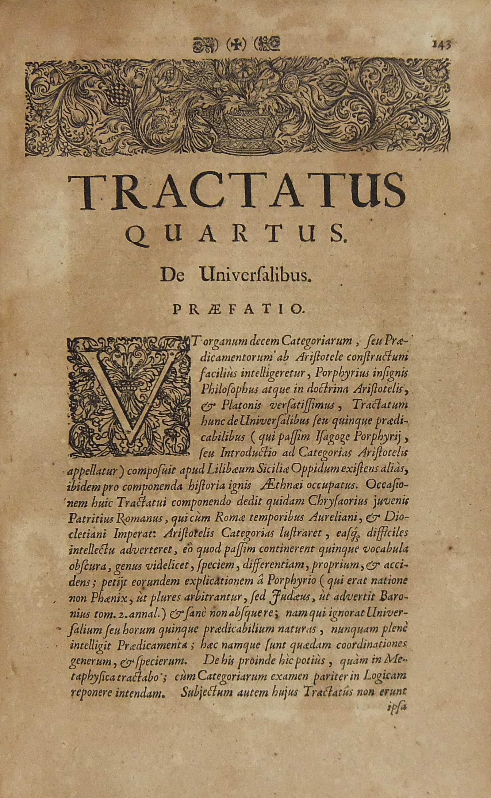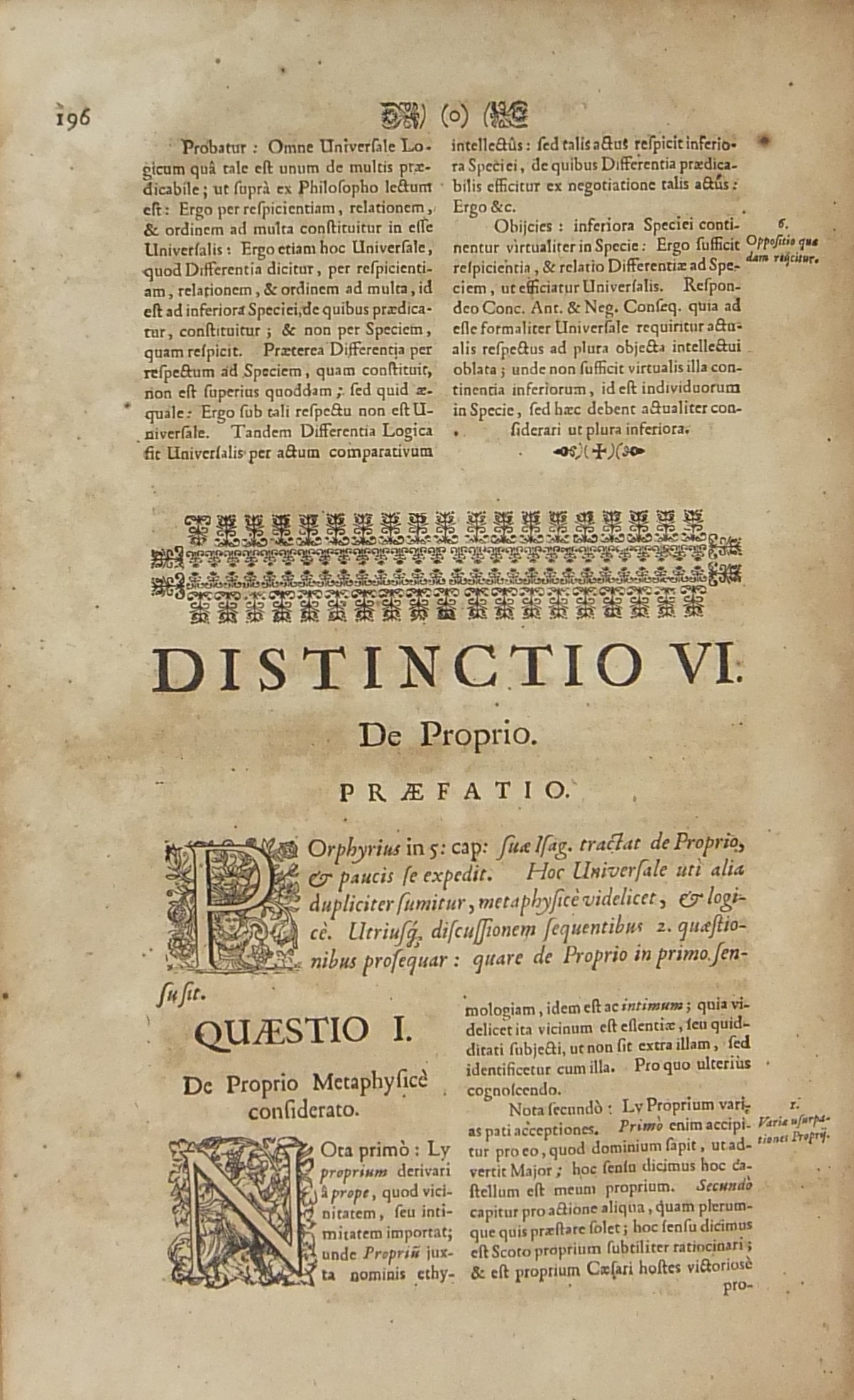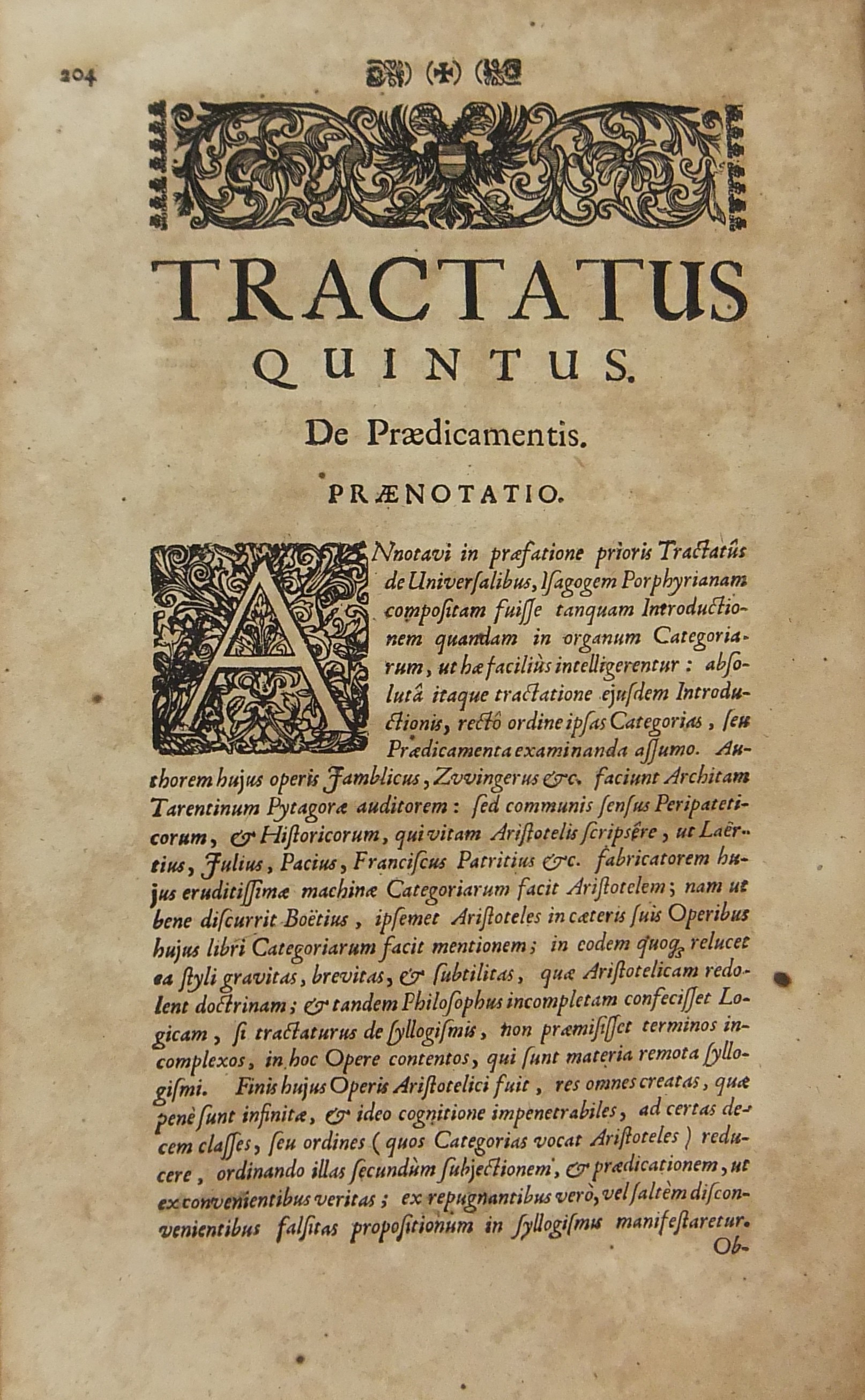 Schola philosophica scotistarum seu cursus philosophicus completus ad mentem Doctoris Subtilis Joannis Duns Scoti.. Tomus I (unico pubblicato) - Continens Prologum in Universam Philosophiam. Dialecticam. Tractatum in Proemialia Logicae. Tractatum de Ente Rationis. Tractatum de Distinctionibus. Tractatum de Universalibus. Tractatum de Praedicamentis. Tractatum in Libros Perihermenias. Tractatum in Libros Priorum. Tractatum in Libros Posteriorum. Tractatum in Libros Topicorum. Tractatum de Ethica