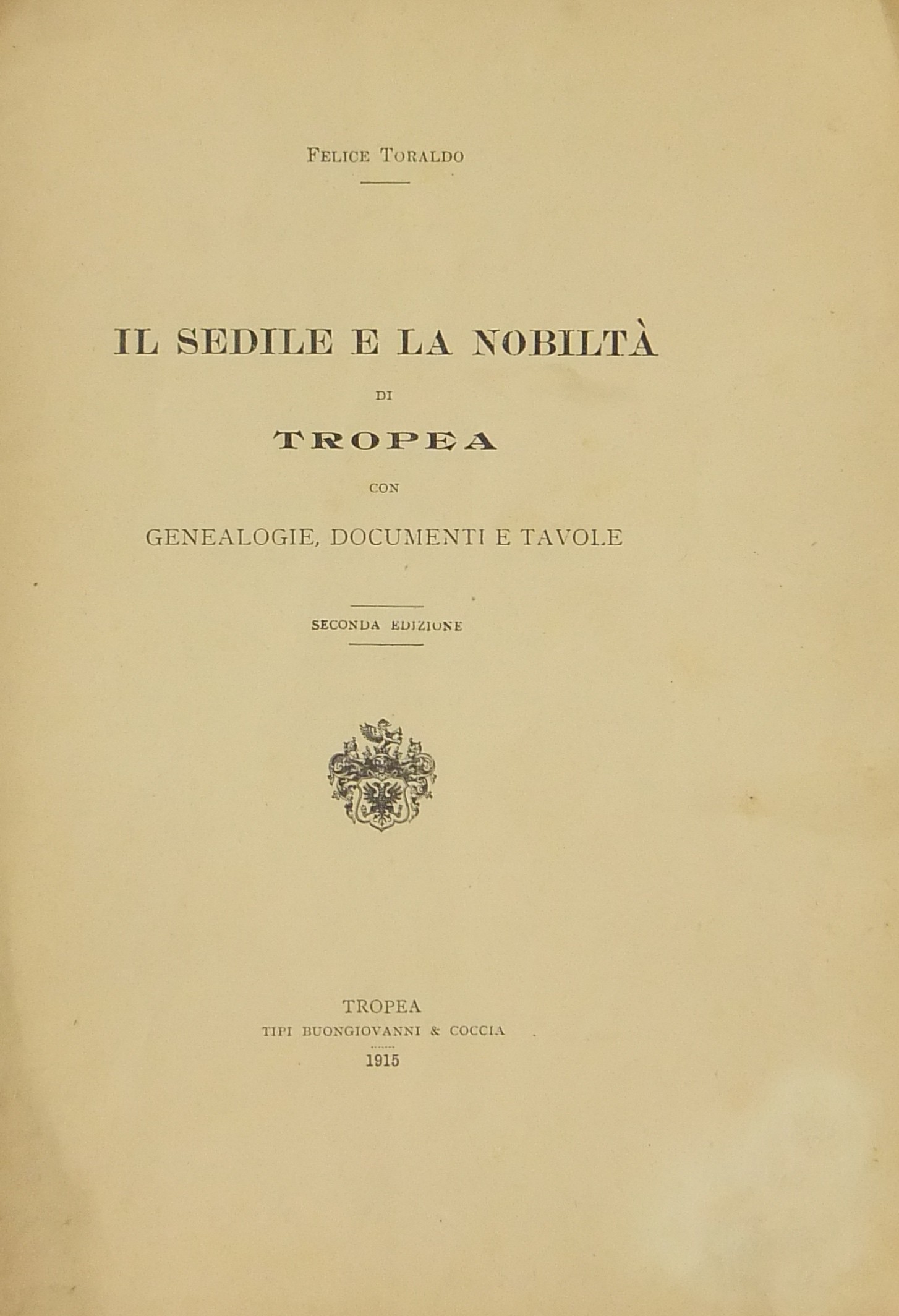 Il Sedile e la nobiltà di Tropea con genealogie, documenti e tavole