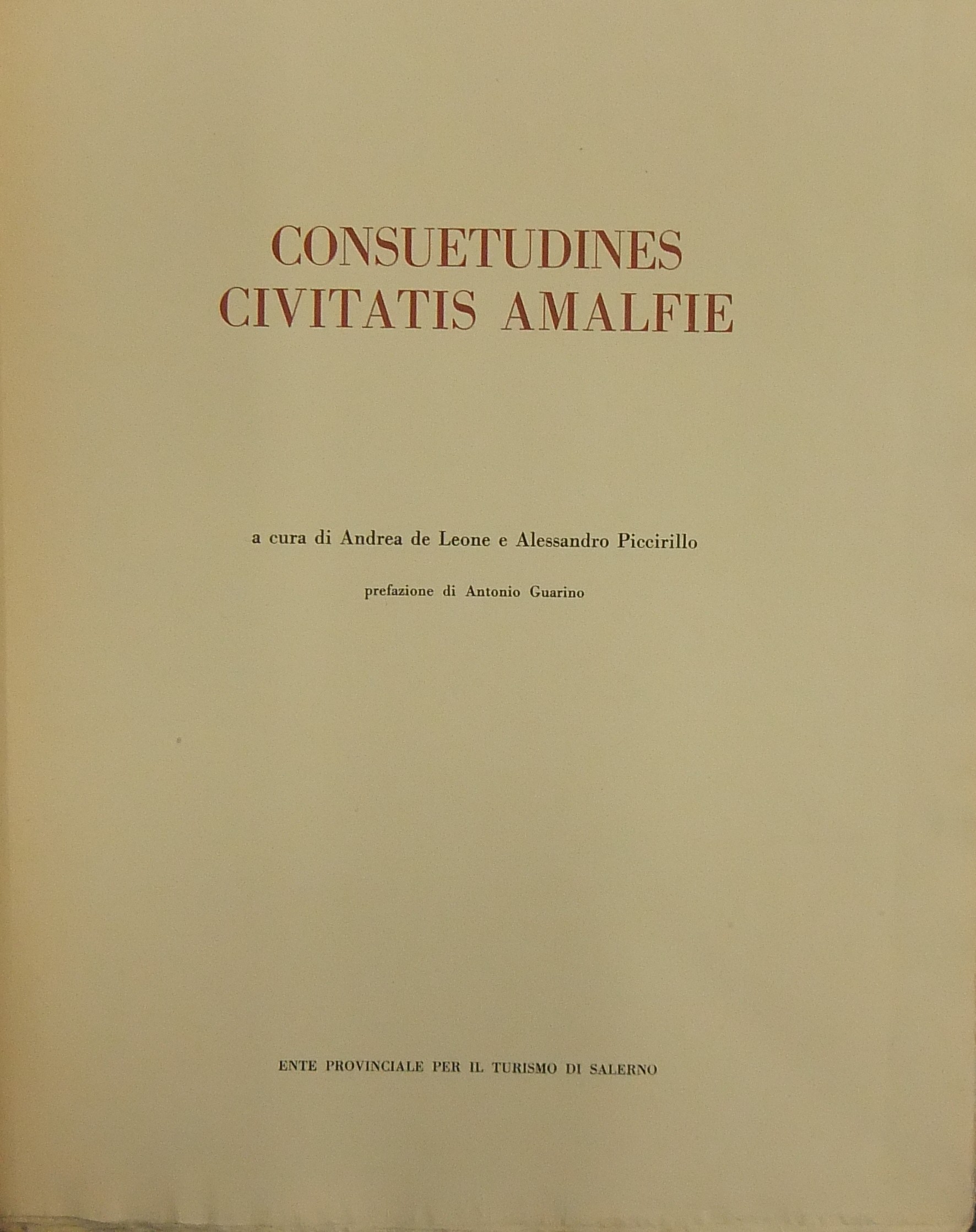 Consuetudines civitatis Amalfie. Prefazione di Antonio Guarino