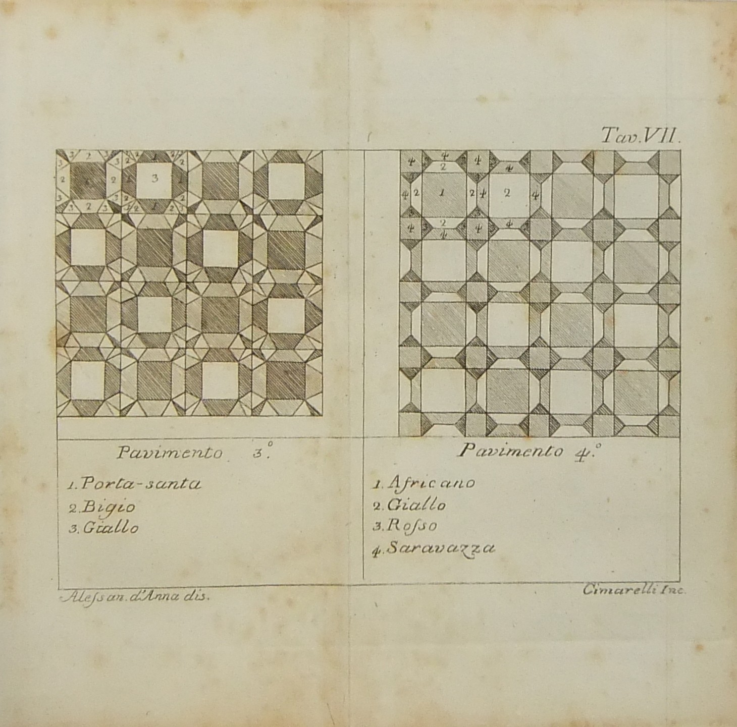 Impreziosicono l’opera 9 tavole calcografiche doppie raffiguranti la mappa dell’isola con indicati i luoghi delle 12 ville di Tiberio reperti di scavo e una veduta della Grotta Azzurra. Si segnala ancora una piccola veduta dell’isola dal mare sempre incisa in rame al frontespizio e vari finalini xilografici istoriati