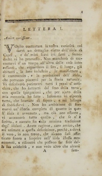 Ragguagli di varii scavi, e scoverte di antichità fatte nell'isola di Capri dal Sig. Hadrava e dal medesimo comunicati per lettere ad un suo amico in Vienna