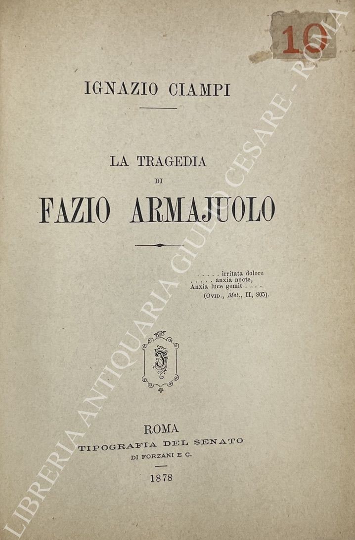 Luogo: Roma - FirenzeEditore: Tipografia di F. Cuggiani - Tipografia del popolo romano - Giuseppe Formigli - Tipografia editrice romana