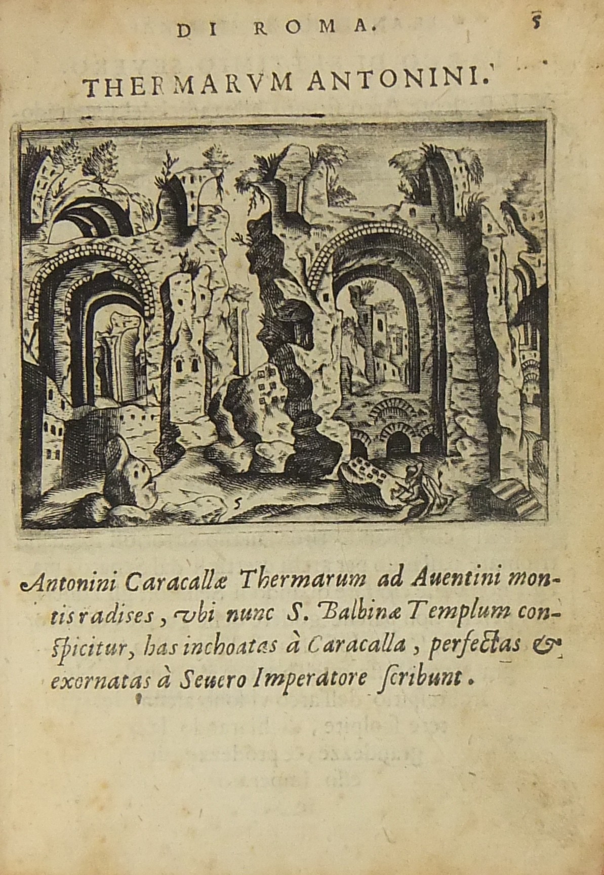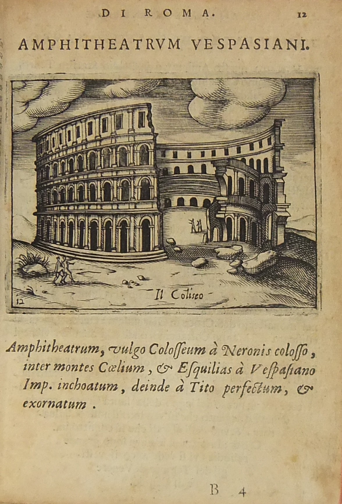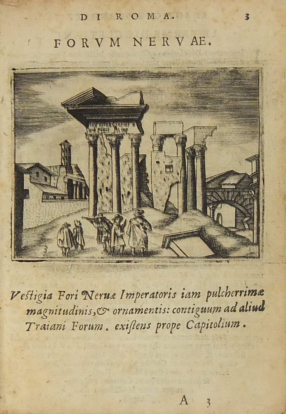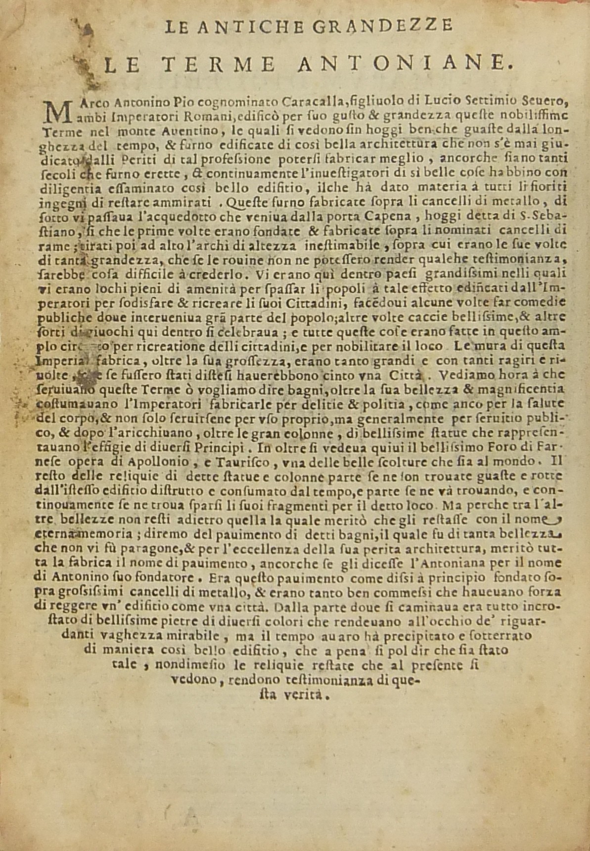 Testi e incisioni relativi a: Foro Romano, Foro di Traiano, Foro di Nerva, Terme di Diocleziano, Terme di Caracalla, Arco di Settimio Severo, Arco di Costantino, Porta Maggiore, Arco di Tito e Vespasiano, Arco di San Giorgio, Arco di Domiziano, Colosseo, Anfiteatro di Statilio Tauro, Teatro di Marcello, Pantheon, Tempio in Pace, Tempio della Concordia, Tempio di Giano, Basilica di Antonino Pio, Tempio della Fortuna, Tempio di Antonino e Faustina, Tempio di Giove Statore, Tempio del Sole, Castel S. Angelo, Sepolcro di Cecilia Metella, Piramide Cestia, Campidoglio, Circo di Massenzio, Trofei di Mario, Palazzo Maggiore, Isola Tiberina, Colonna Traiana, Colonna di Antonino Pio, Obelisco di San Pietro, Obelisco Lateranense, Obelisco Esquilino, Obelisco di Santa Maria del Popolo, Obelisco di San Mauto, Obelisco nel Giardino de’ Medici, Obelisco Mattei (di Villa Celimontana), Colonna di Santa Maria Maggiore, Facciata della Basilica di San Pietro in Vaticano, Scala Santa, Palazzo Pontificio di San Pietro, Quirinale, Collegio Romano, Sapienza, Palazzo della Cancelleria, Palazzo Farnese, Palazzo Borghese, Villa Borghese, Villa Medici, Giardino de’ Mattei, Fontana di S. Pietro al Montorio, Fontana di Terme, Fontana di S. Pietro in Vaticano, Piazza Navona.