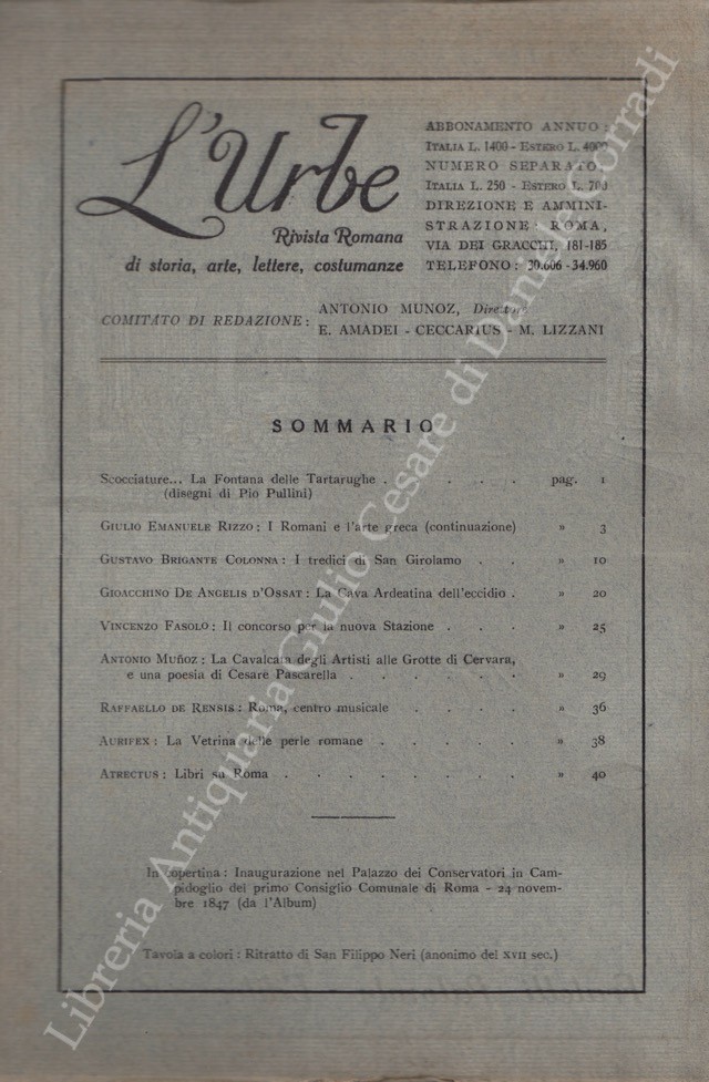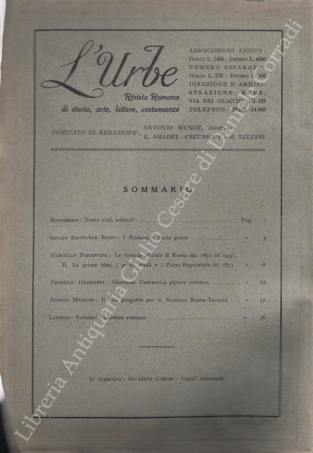 Scritti di: Atrectus, Aurifex, Brigante Colonna, De Angeli D’Ossat, De Rensis, Fasolo, Hermanin, Lanista, Lizzani, Martire, Mazzoni, Munoz, Piacentini, Re, Rizzo