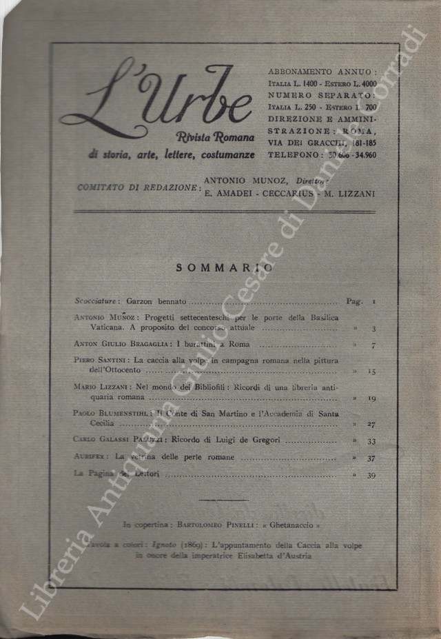 Scritti di: Aurifex, Blumenstihl, Boyer, Bragaglia, Brigante Colonna, Castagnoli, Comandè, De Angeli D’Ossat, De Rensis, Di Castro, Donini, Gibellino, Huetter, Jannattoni, Lauri-Volpi, Lefevre, Lizzani, Lodolini, Munoz, Paluzzi, Patrignani, Piacentini, Pietrangeli, Re, Santini, Scarpa, Segre, Veo