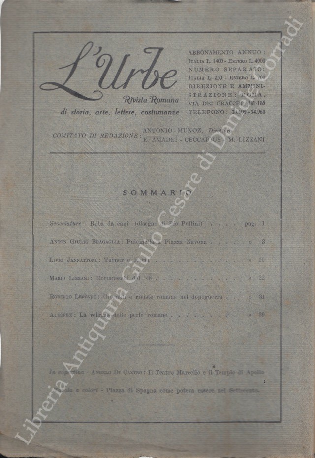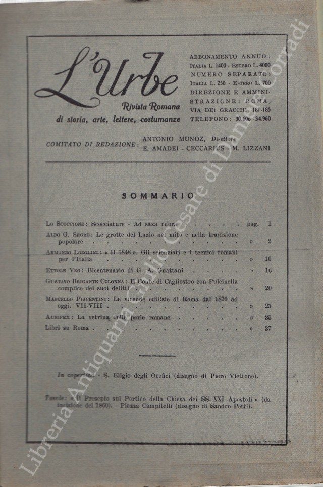 L'Urbe. Rivista romana. Fondata da Antonio Munoz, diretta da Emma Amadei Ceccarius e Mario Lizzani. Anno XI - Nuova serie - 1948