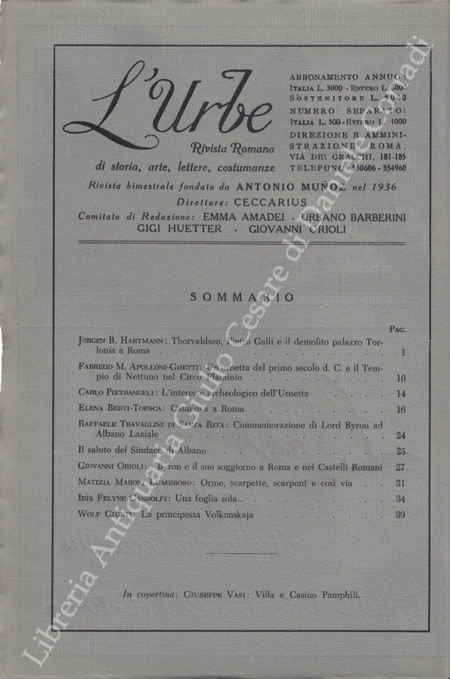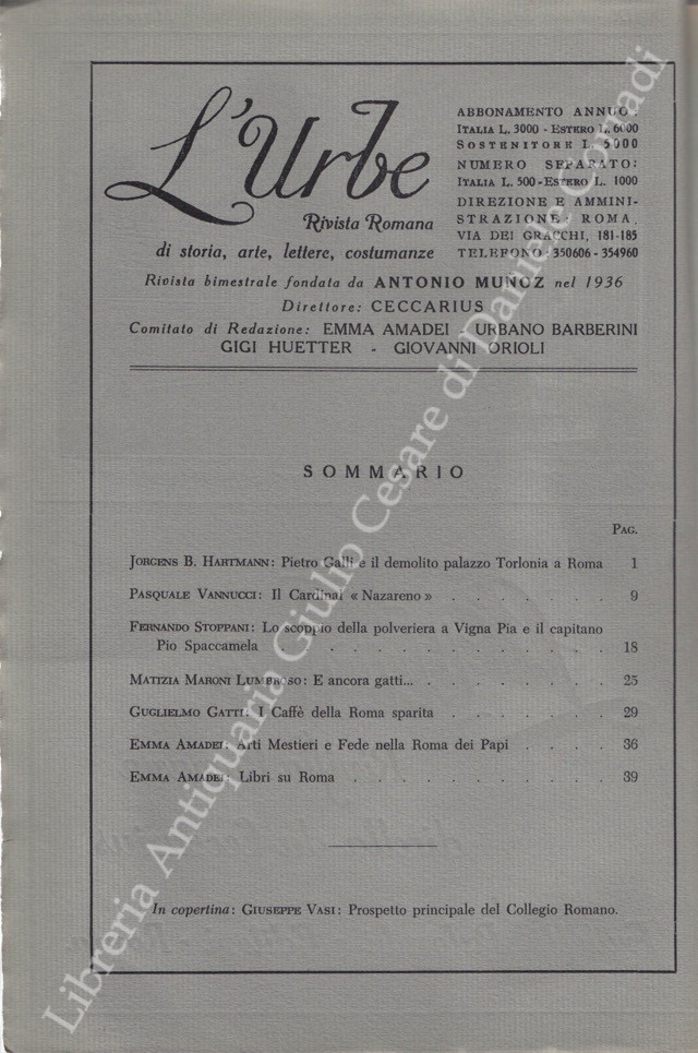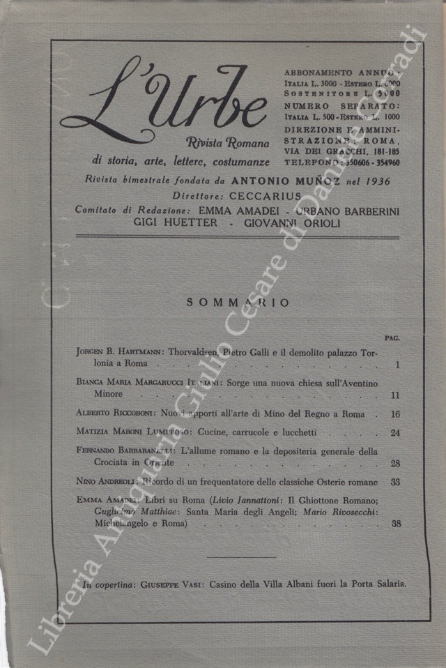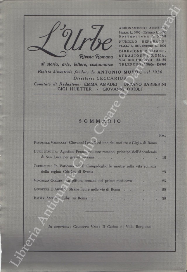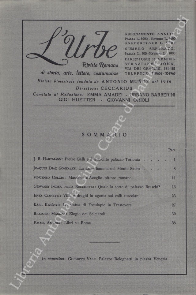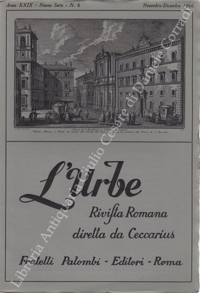 L'Urbe. Rivista romana. Fondata da Antonio Munoz, diretta da Ceccarius, comitato di redazione Emma Amadei, Urbano Barberini, Gigi Huetter, Giovanni Orioli, Ermanno Ponti. Anno XXIX - Nuova serie - 1966