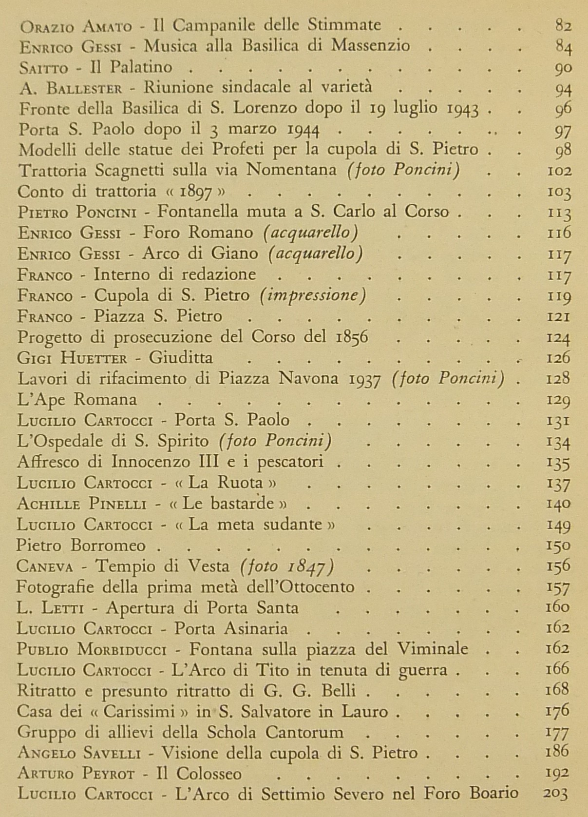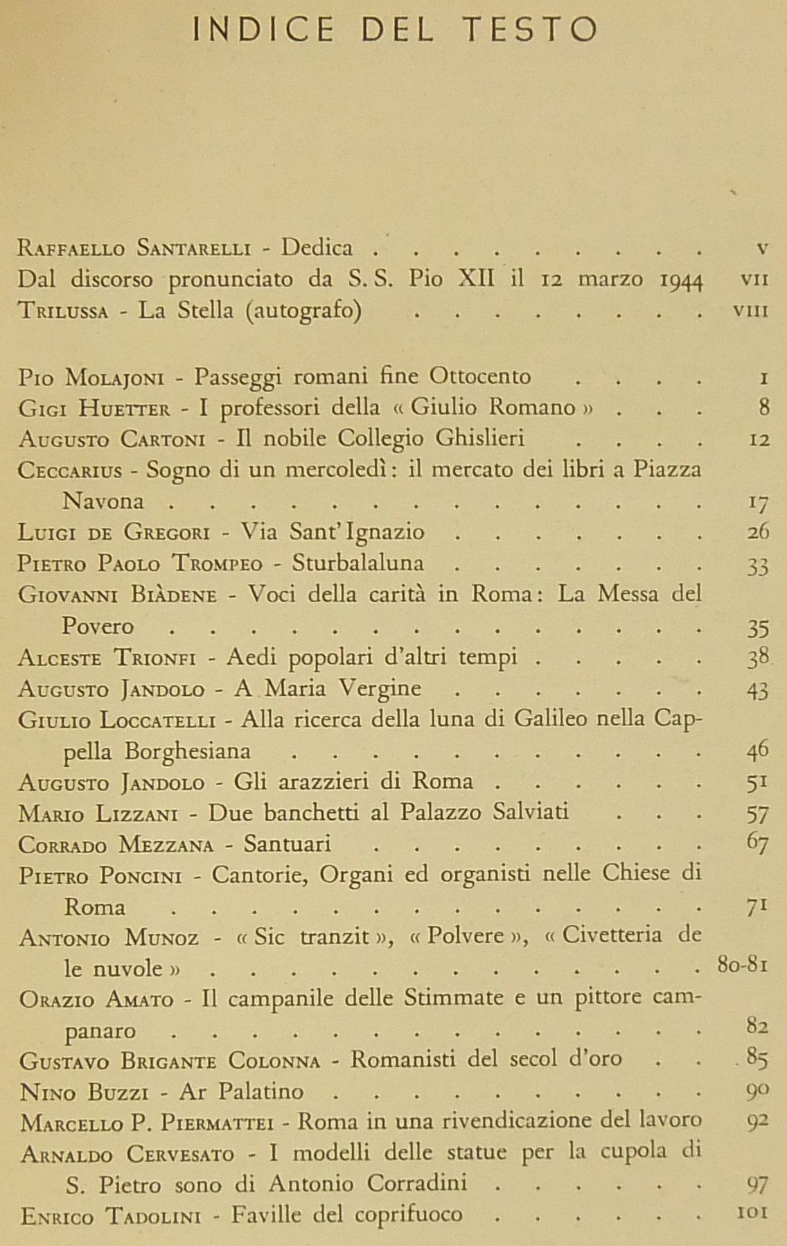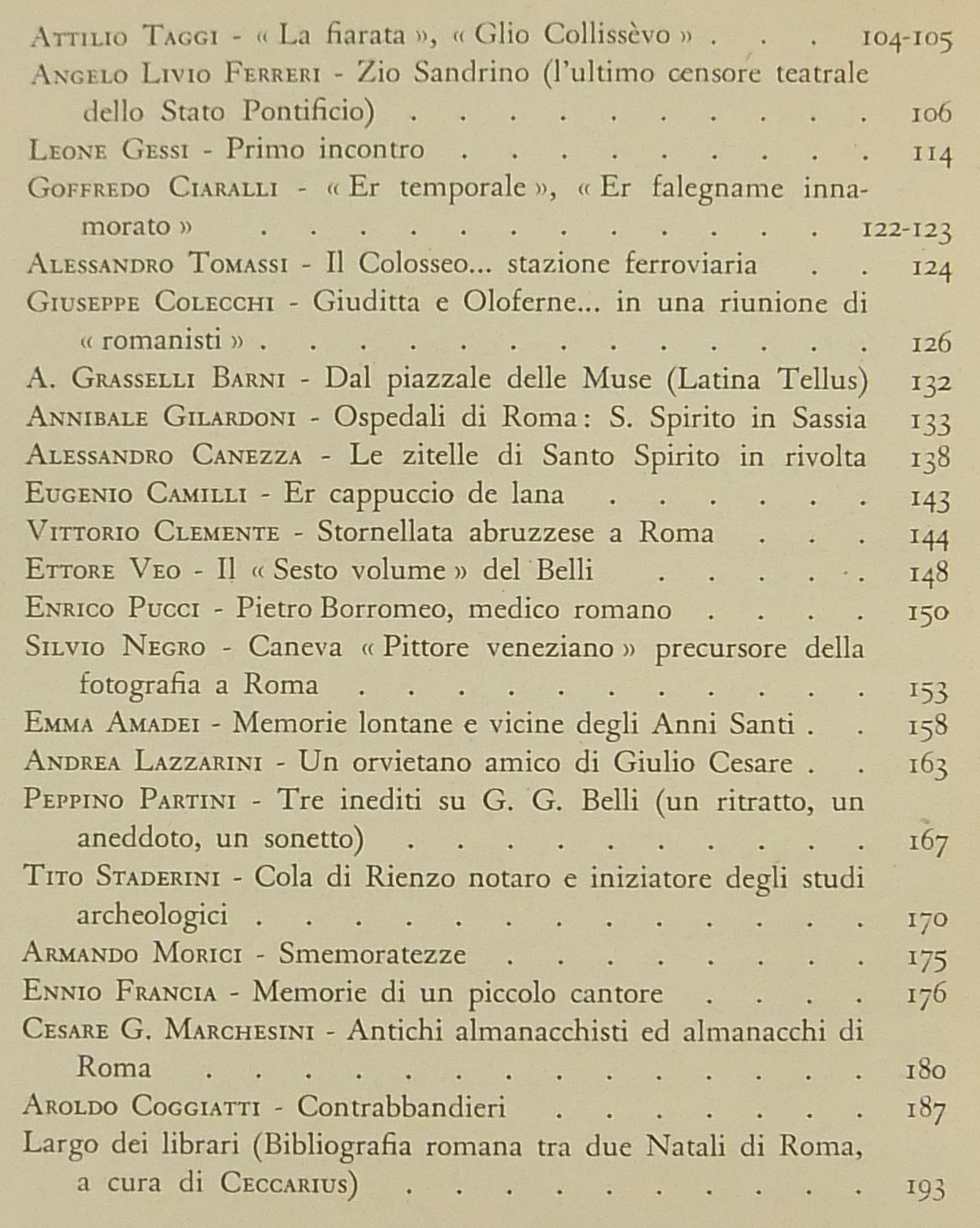 Testi di Raffaello Santarelli, Trilussa, Pio Molajoni, Ceccarius, Luigi De Gregori, Alceste Trionfi, Augusto Jandolo, Mario Lizzani, Antonio Munoz, Gustavo Brigante Colonna, Arnaldo Cervesato, Enrico Tadolini, Leone Gessi, Ettore Veo, Silvio Negro, Emma Amadei, Tito Staderini et al.